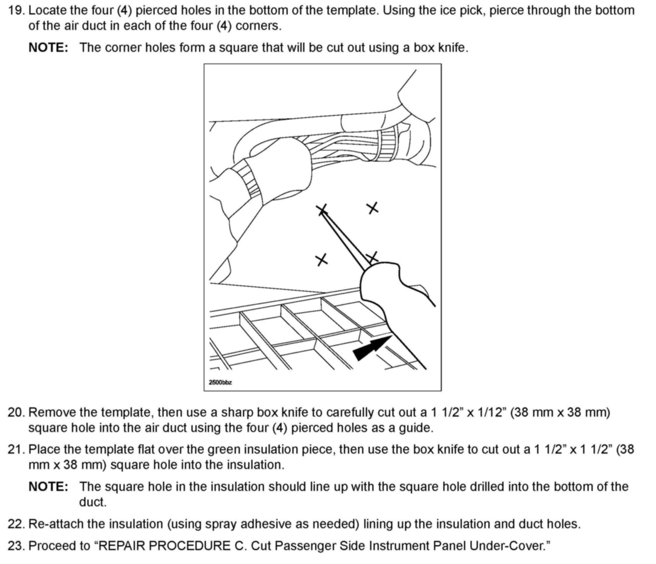 REPAIR B: Create An Opening In The Passenger Side Air Vent Duct