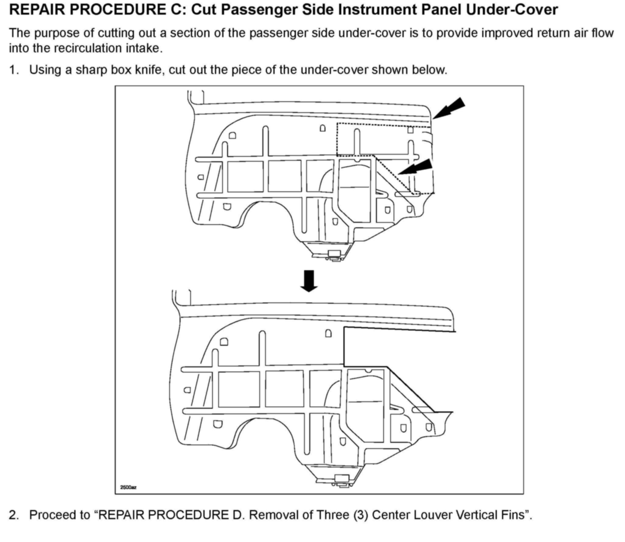 REPAIR PROCEDURE C: Cut Passenger Side Instrument Panel Under-Cover