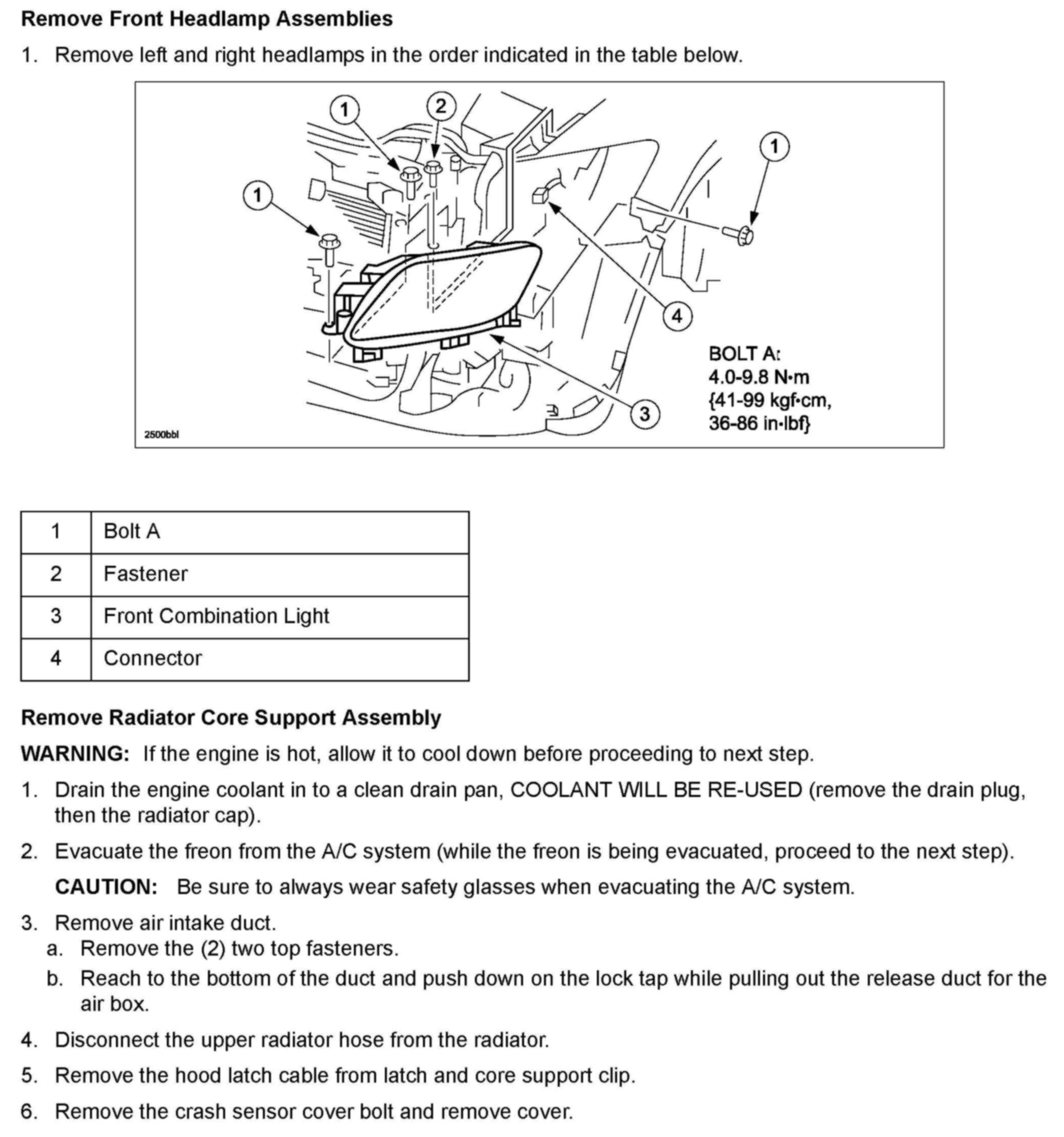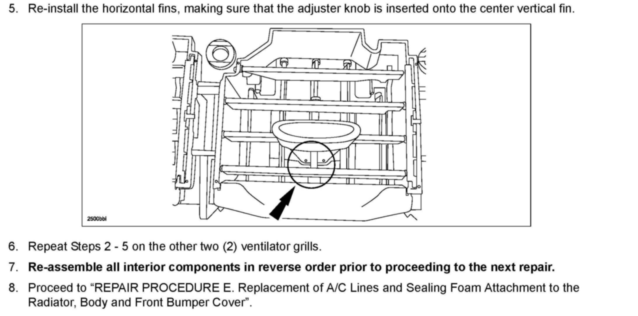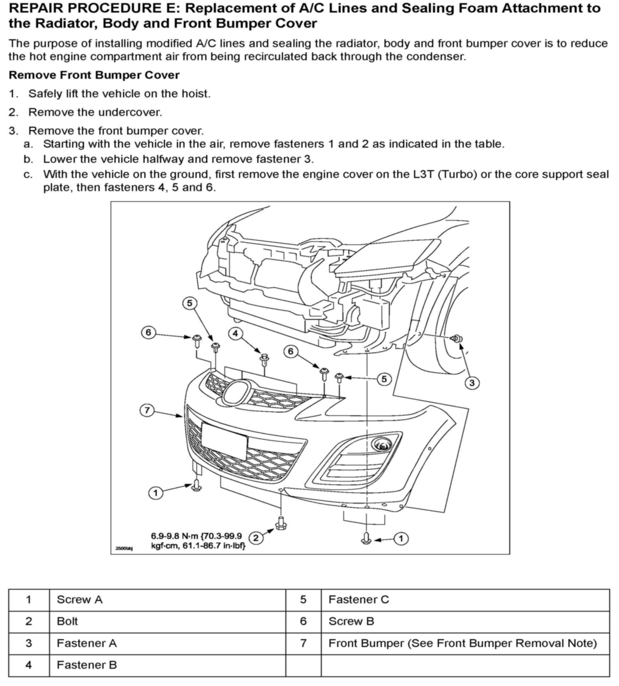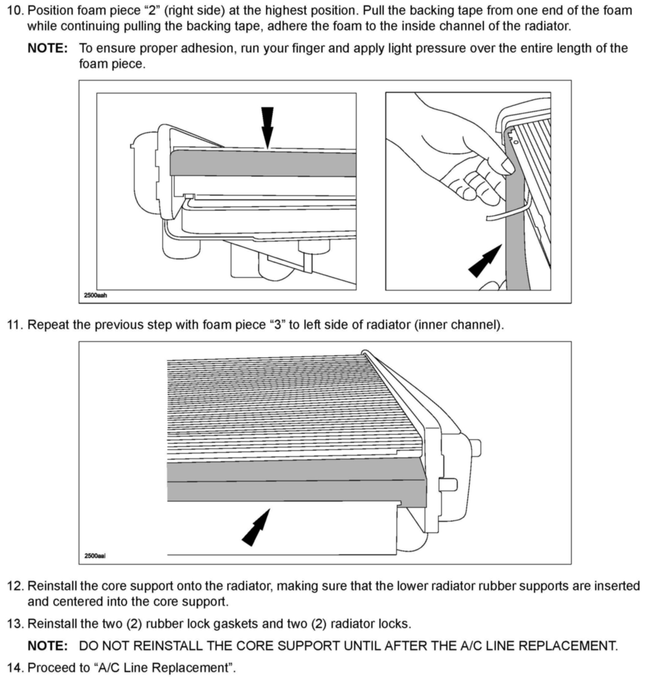 REPAIR PROCEDURE E: Replacement of A/C Lines and Sealing Foam Attachment to the radiator, Body and front Bumper Cover
