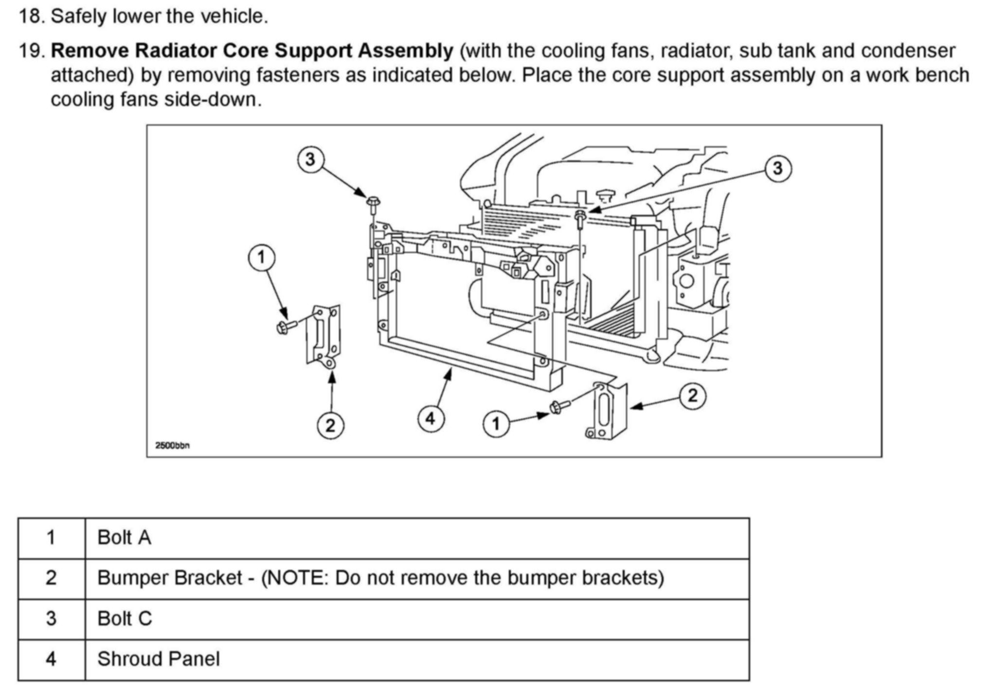 Remove Front Headlamp Assemblies/Remove Radiator Core Support Assembly