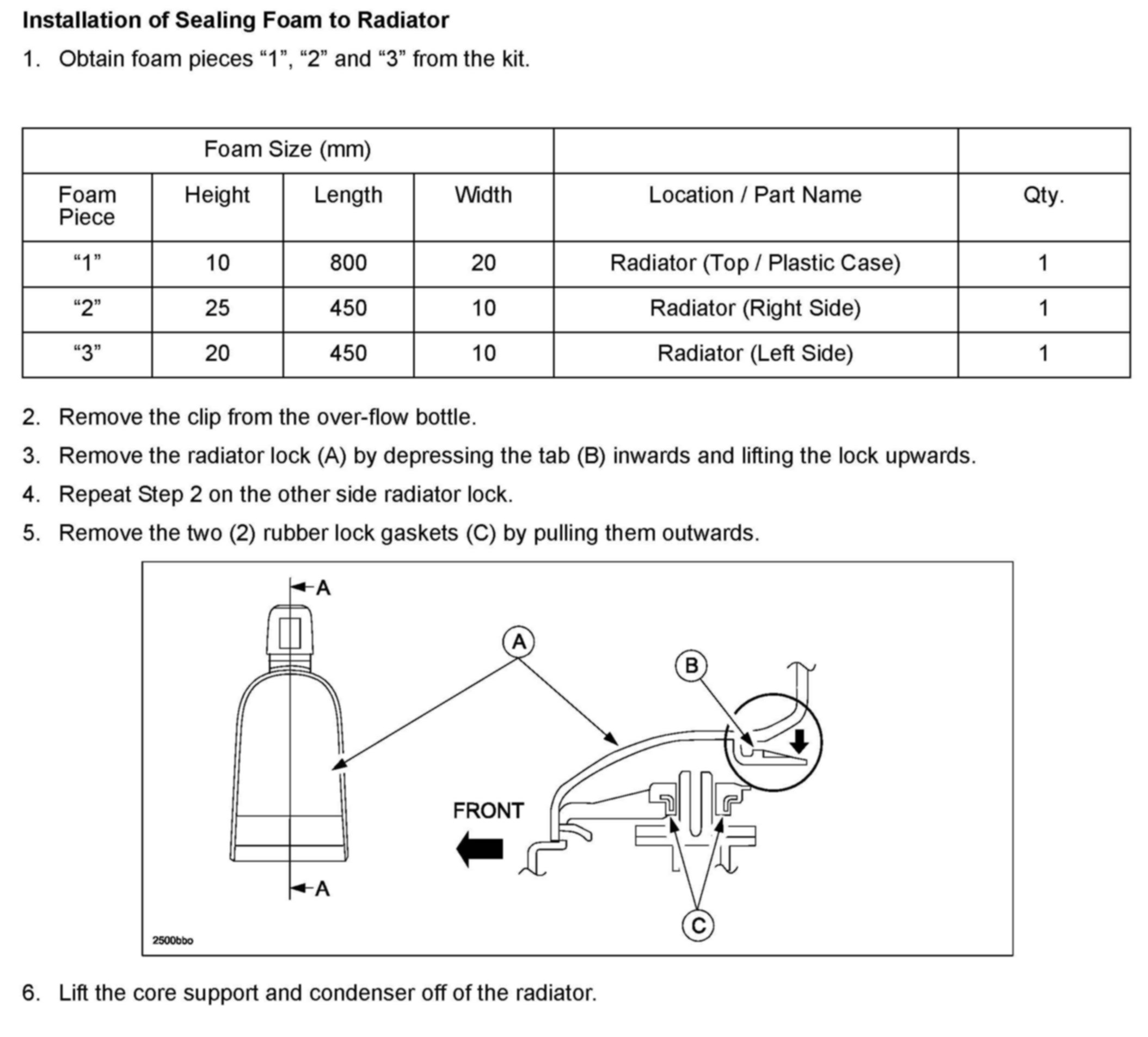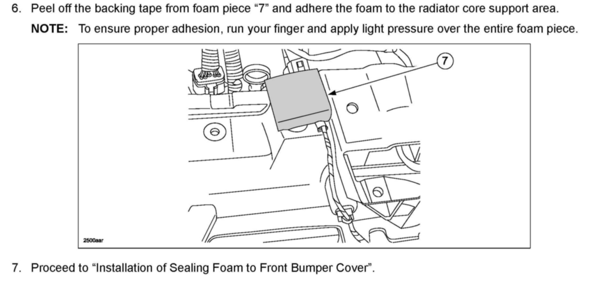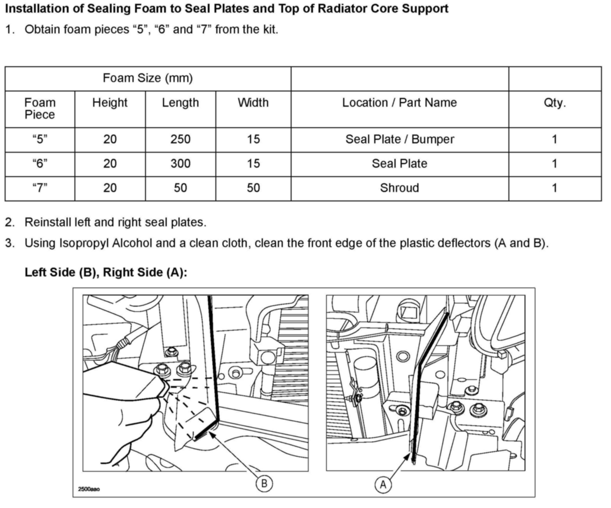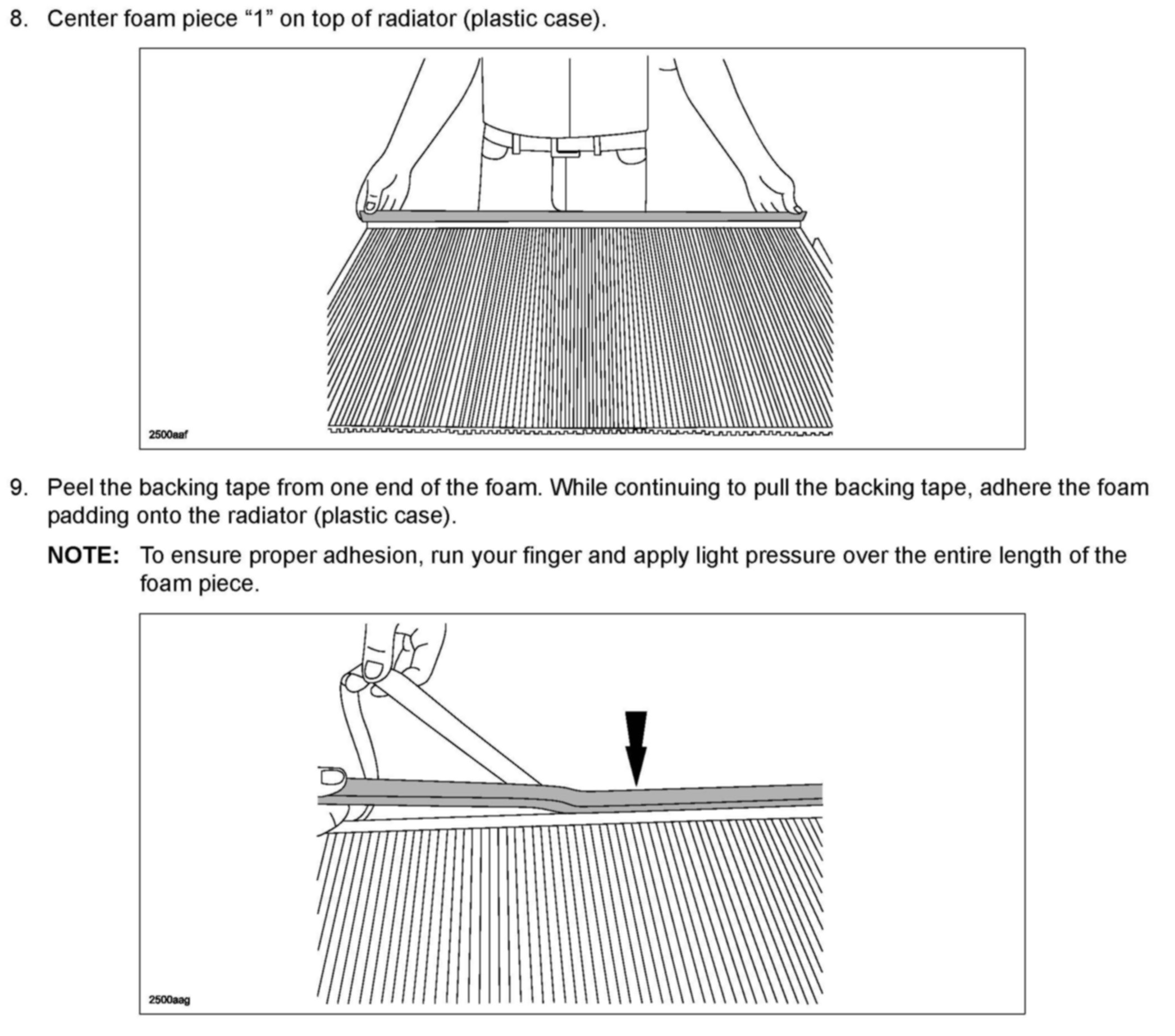 Installation of Sealing Foam to seal Plates and Top of Radiator Core Support