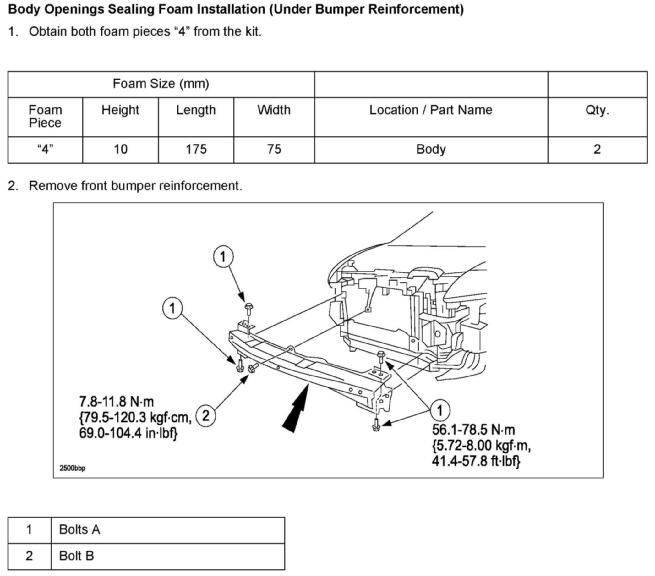 Body Openings Sealing Foam Installation (Under Bumper Reinforcement)