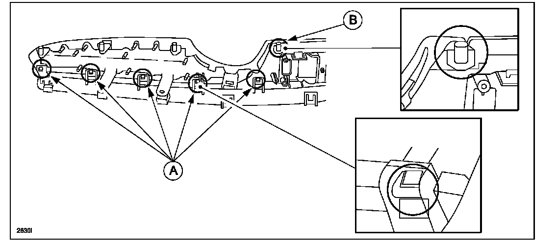 - Door trim with a grip: 5 tabs (A) and 1 tab (B) for grip.