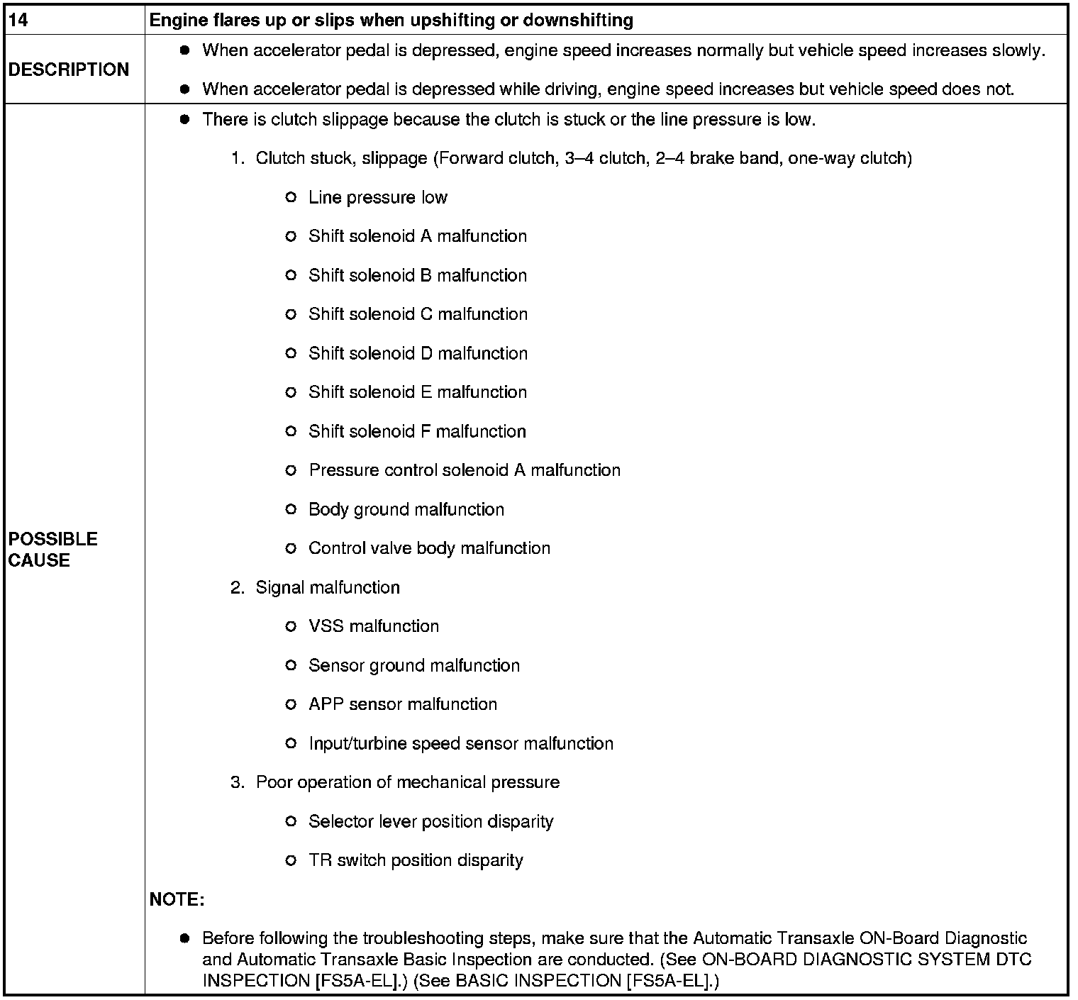 NO.14 ENGINE FLARES UP OR SLIPS WHEN UPSHIFTING OR DOWNSHIFTING [FS5A-EL]
