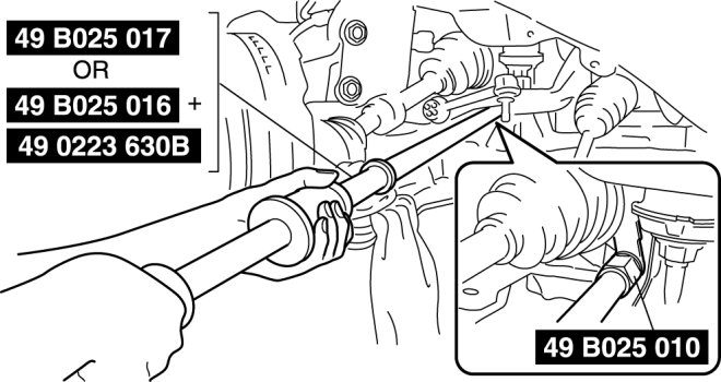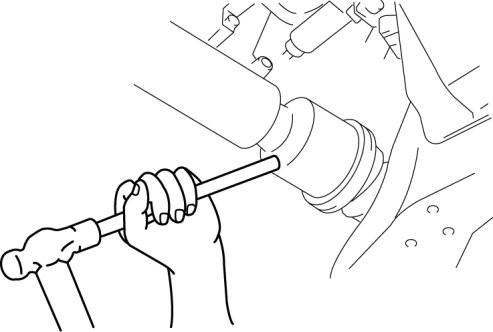 2. Tap the nut with a copper hammer to loosen the drive shaft from the front wheel hub.