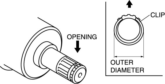 1. Install a new clip onto the drive shaft with the opening facing upward. Ensure that the diameter of the clip does not exceed the specification on installation.