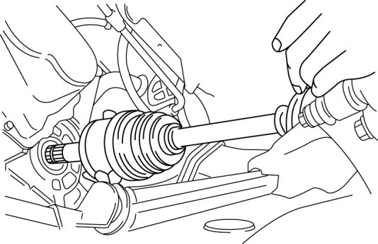 - The sharp edges of the drive shaft can slice or puncture the oil seal. Be careful when installing the drive shaft to the transaxle.