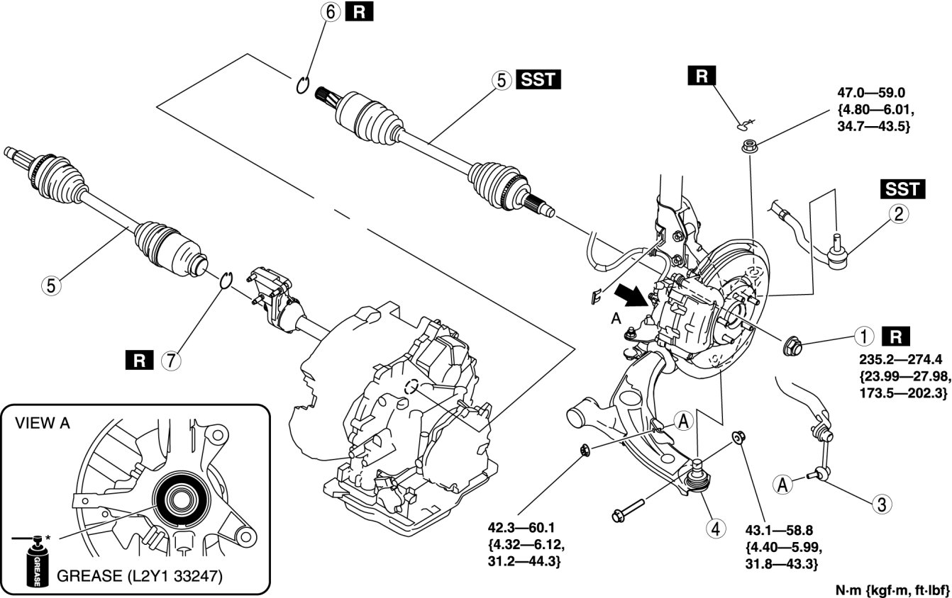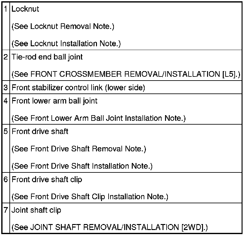 FRONT DRIVE SHAFT REMOVAL/INSTALLATION [L5]