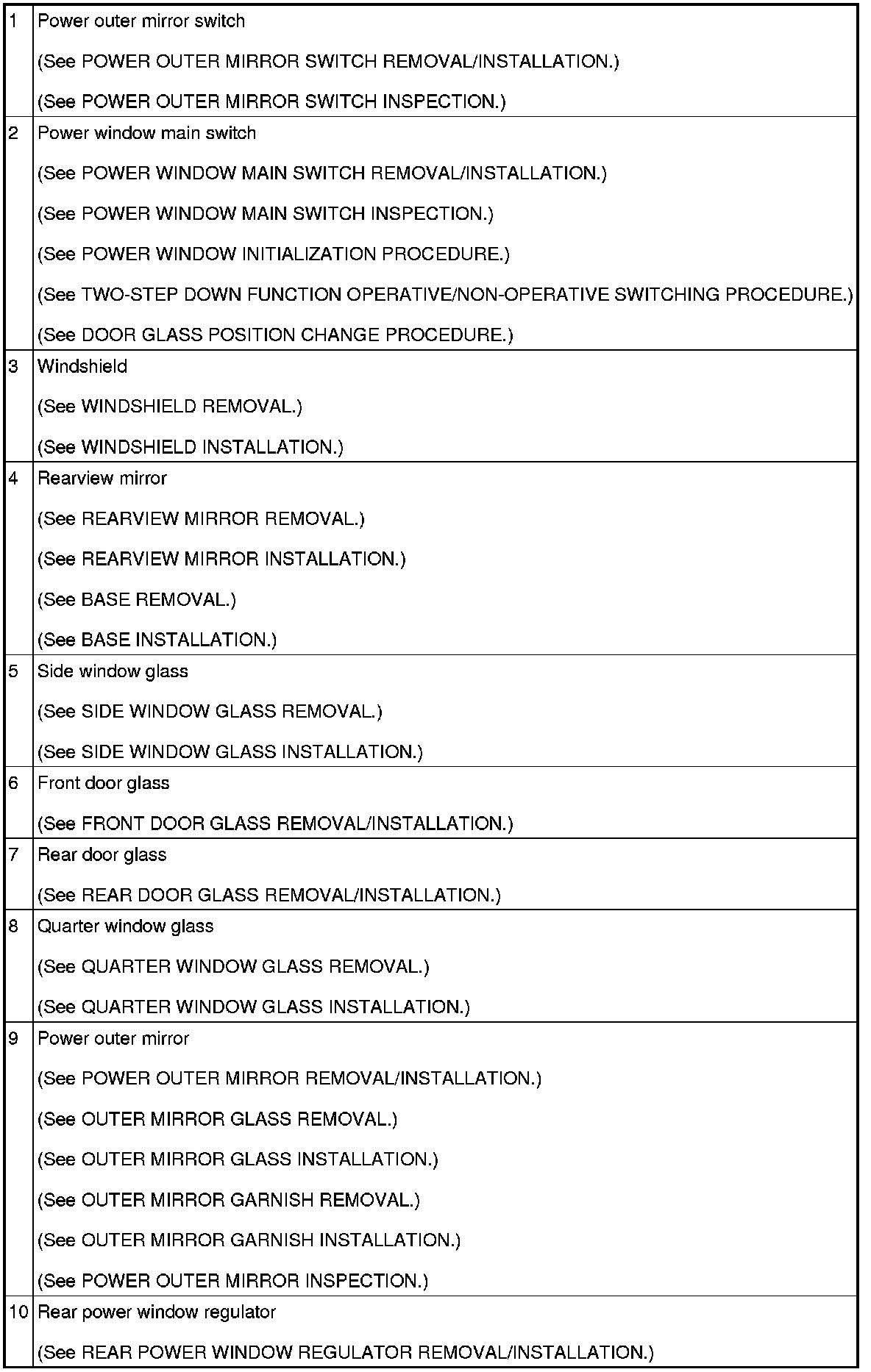 GLASS/WINDOWS/MIRRORS LOCATION INDEX