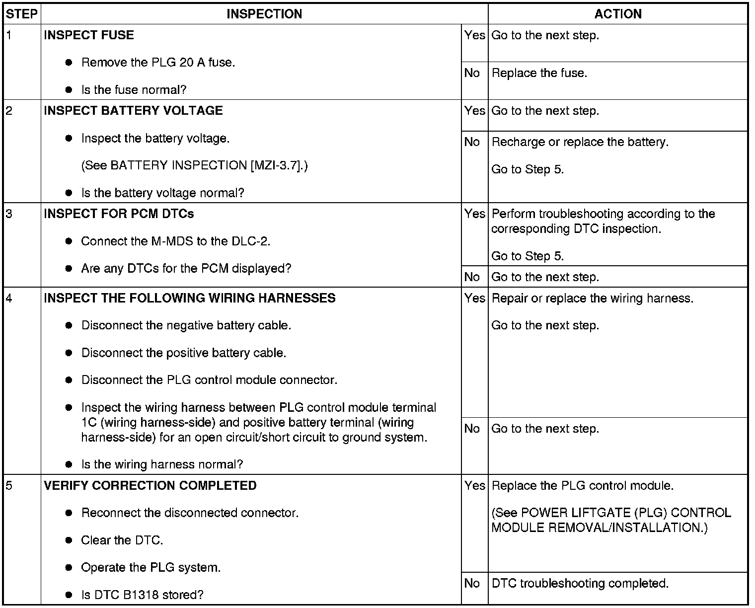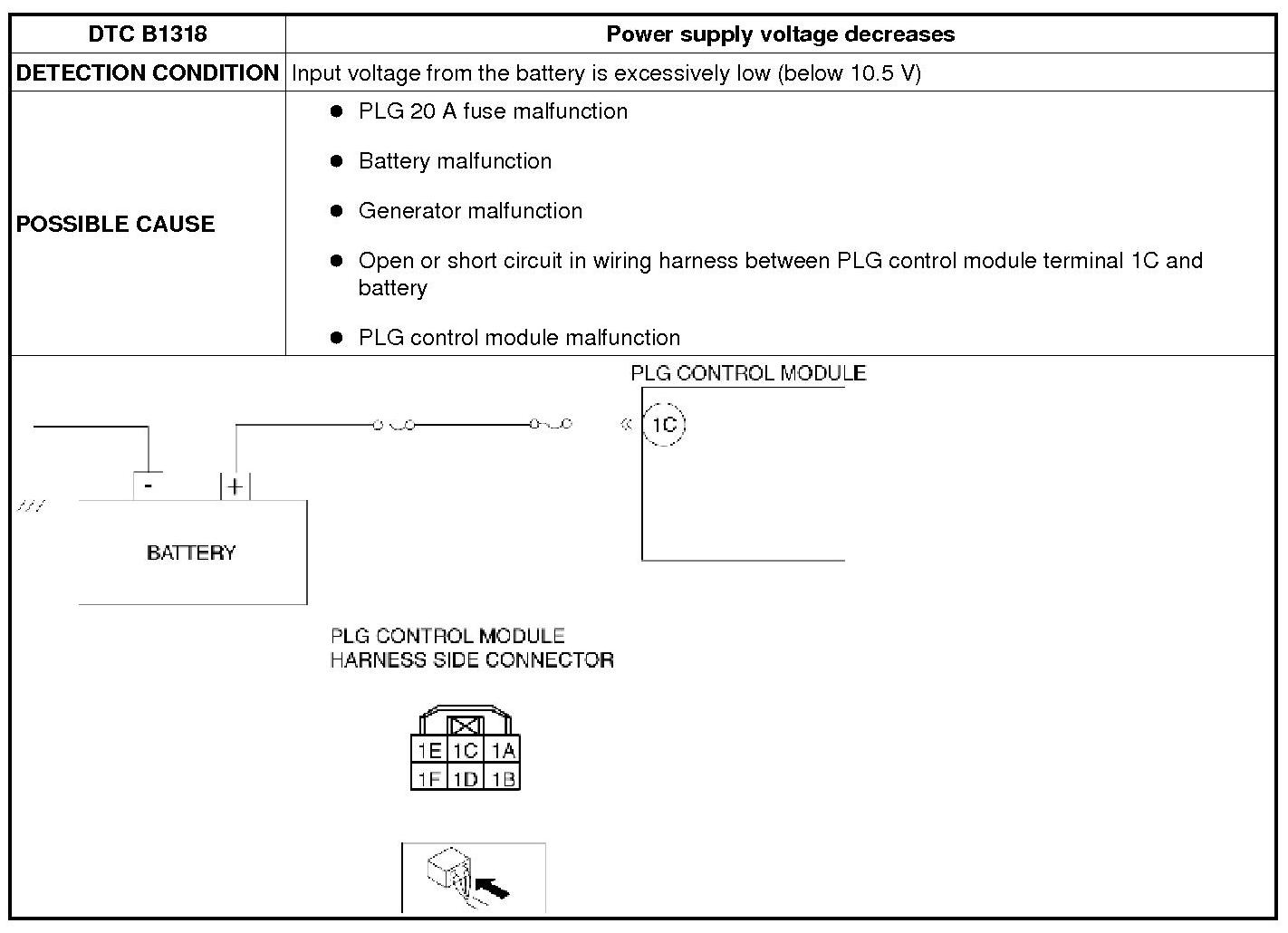 DTC B1318 [POWER LIFTGATE (PLG) SYSTEM]
