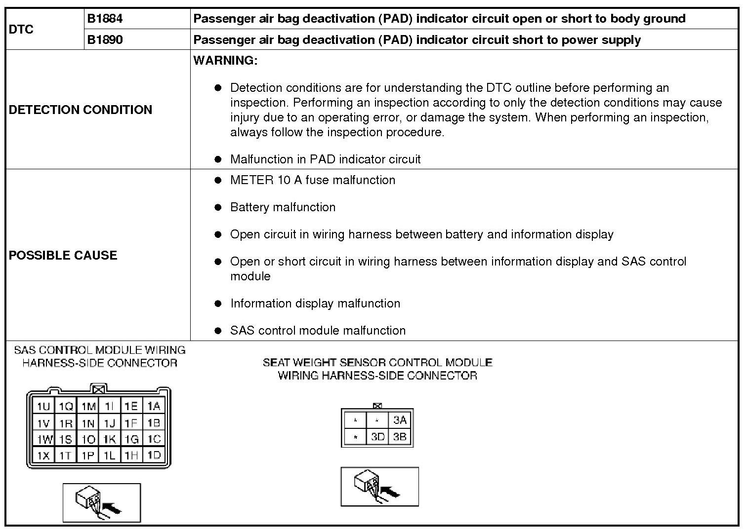 DTC B1884, B1890 [TWO-STEP DEPLOYMENT CONTROL SYSTEM]