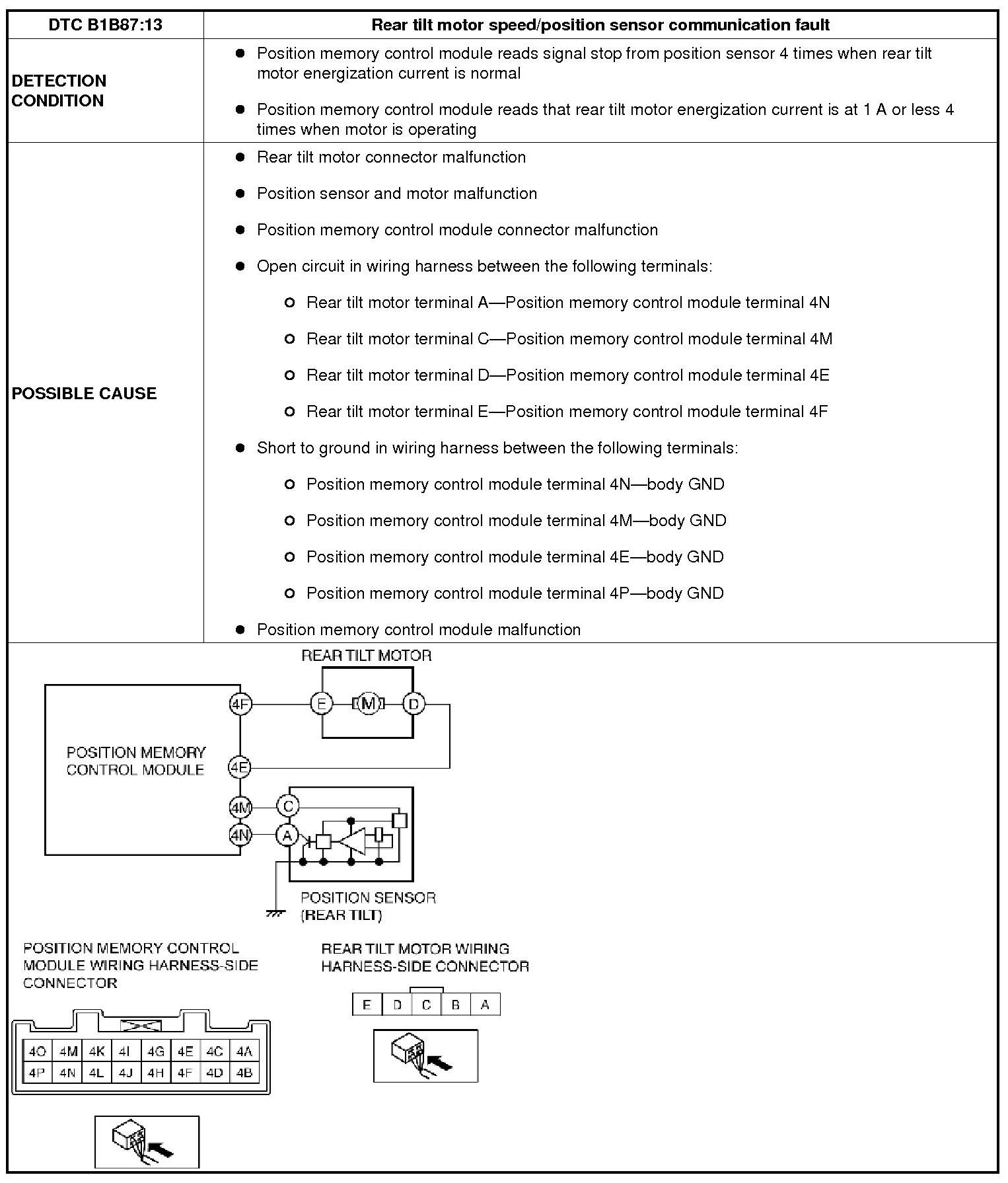 DTC B1B87:13 [POSITION MEMORY CONTROL SYSTEM]
