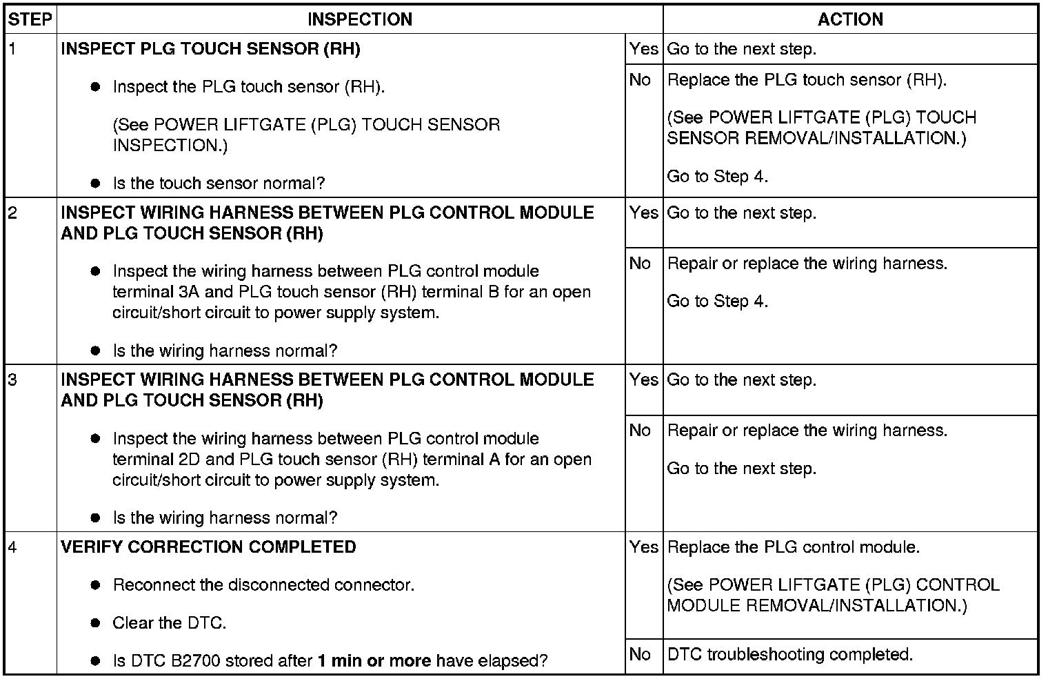 DTC B2700 [POWER LIFTGATE (PLG) SYSTEM]