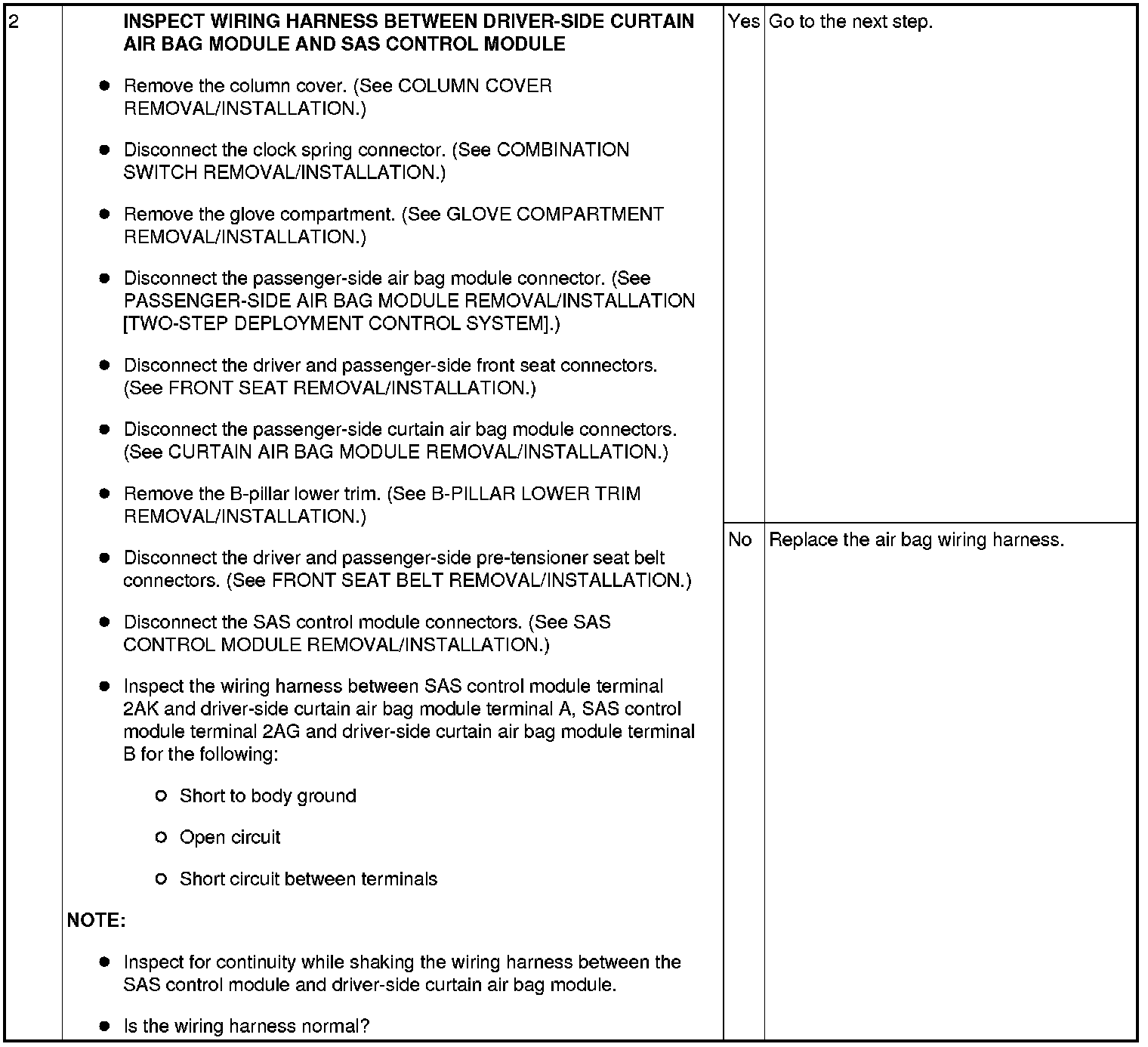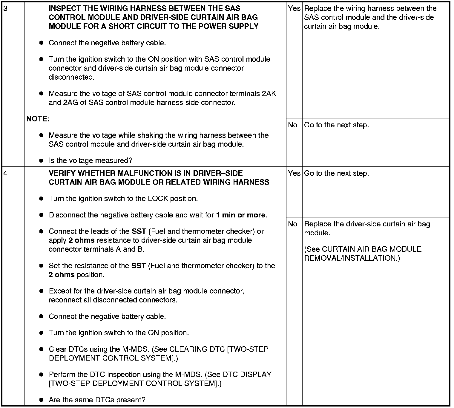 DTC B1046, B2773, B2774, B2775, B2776 [TWO-STEP DEPLOYMENT CONTROL SYSTEM]