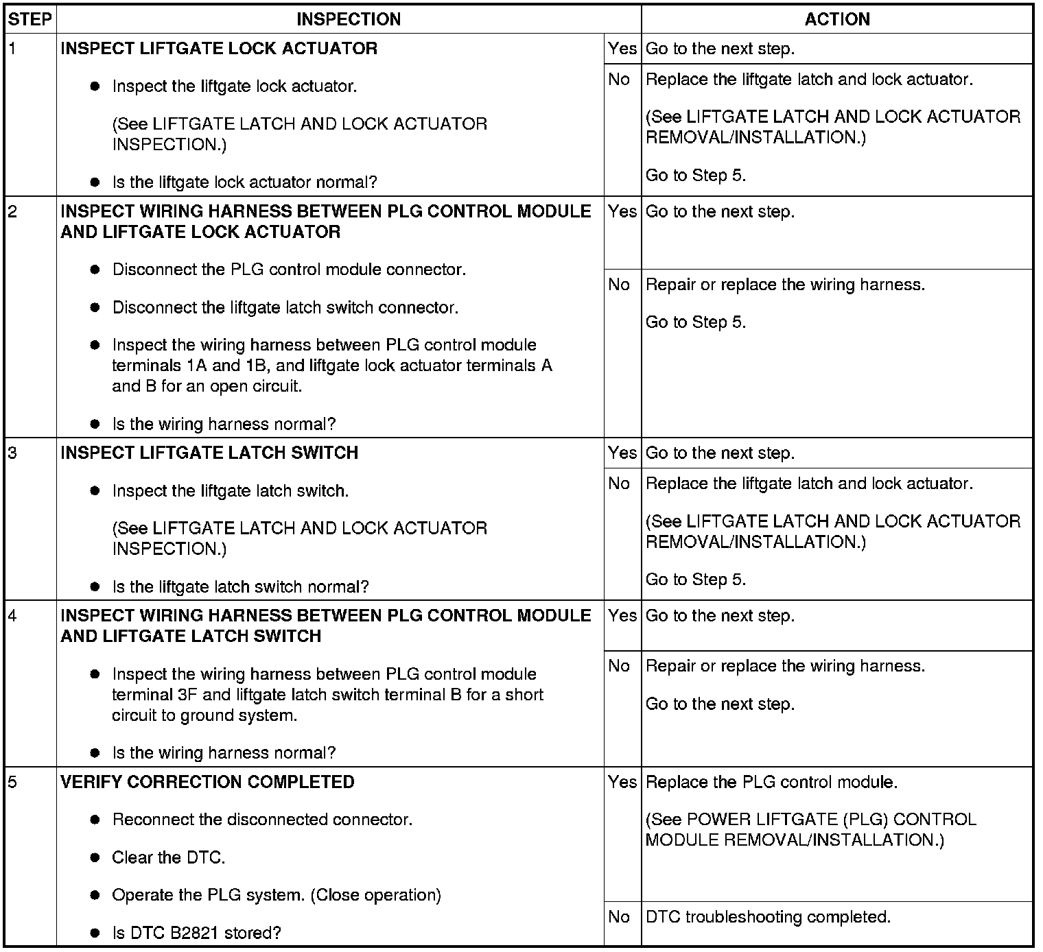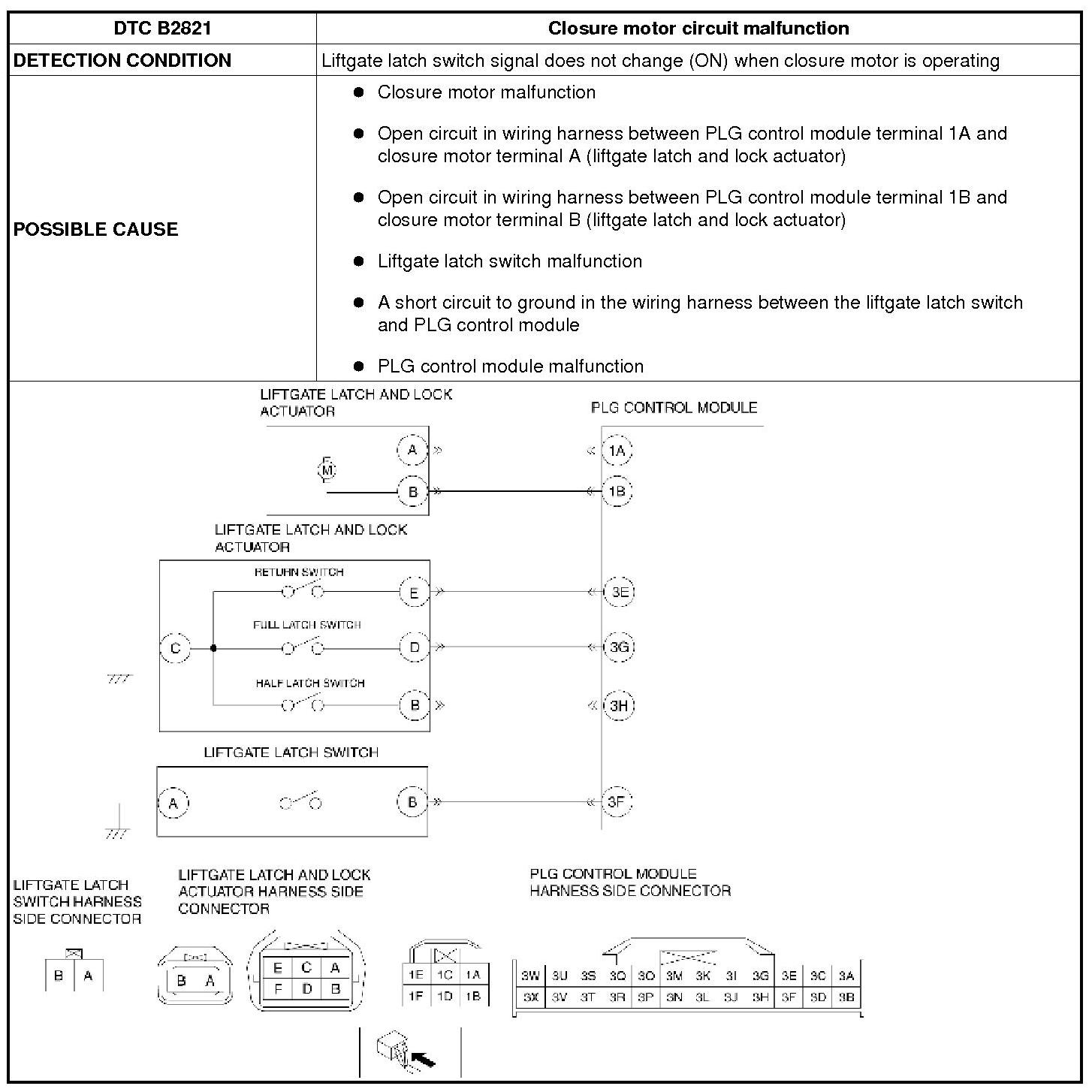 DTC B2821 [POWER LIFTGATE (PLG) SYSTEM]