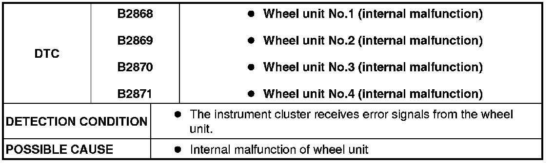 DTC B2868, B2869, B2870, B2871