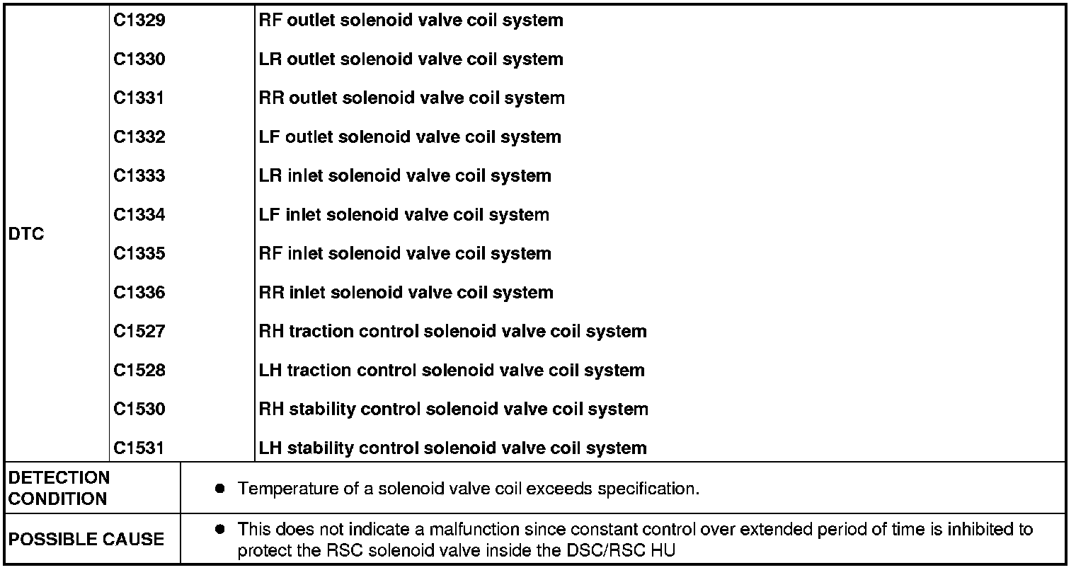 DTC C1329, C1330, C1331, C1332, C1333, C1334, C1335, C1336, C1527, C1528, C1530, C1531 [DSC/RSC]