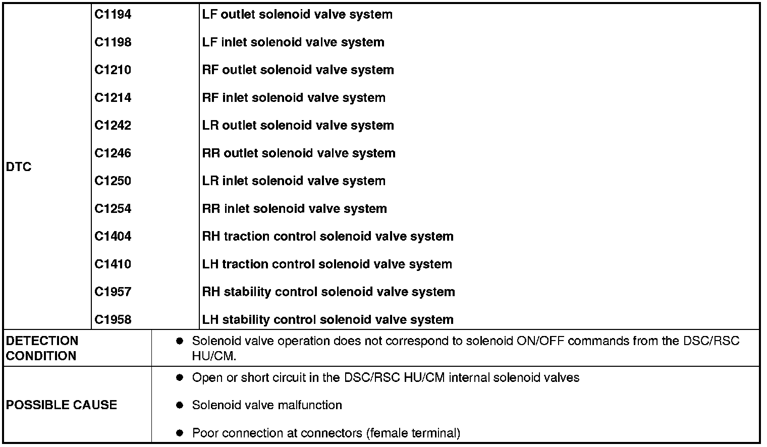 DTC C1194, C1198, C1210, C1214, C1242, C1246, C1250, C1254, C1404, C1410, C1957, C1958 [DSC/RSC]