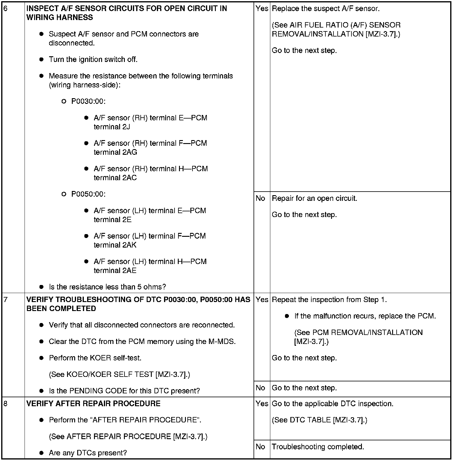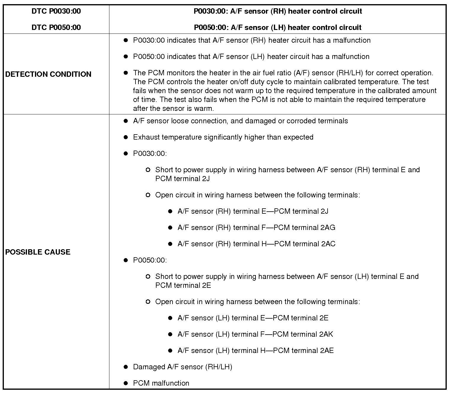 DTC P0030:00, P0050:00 [MZI-3.7]