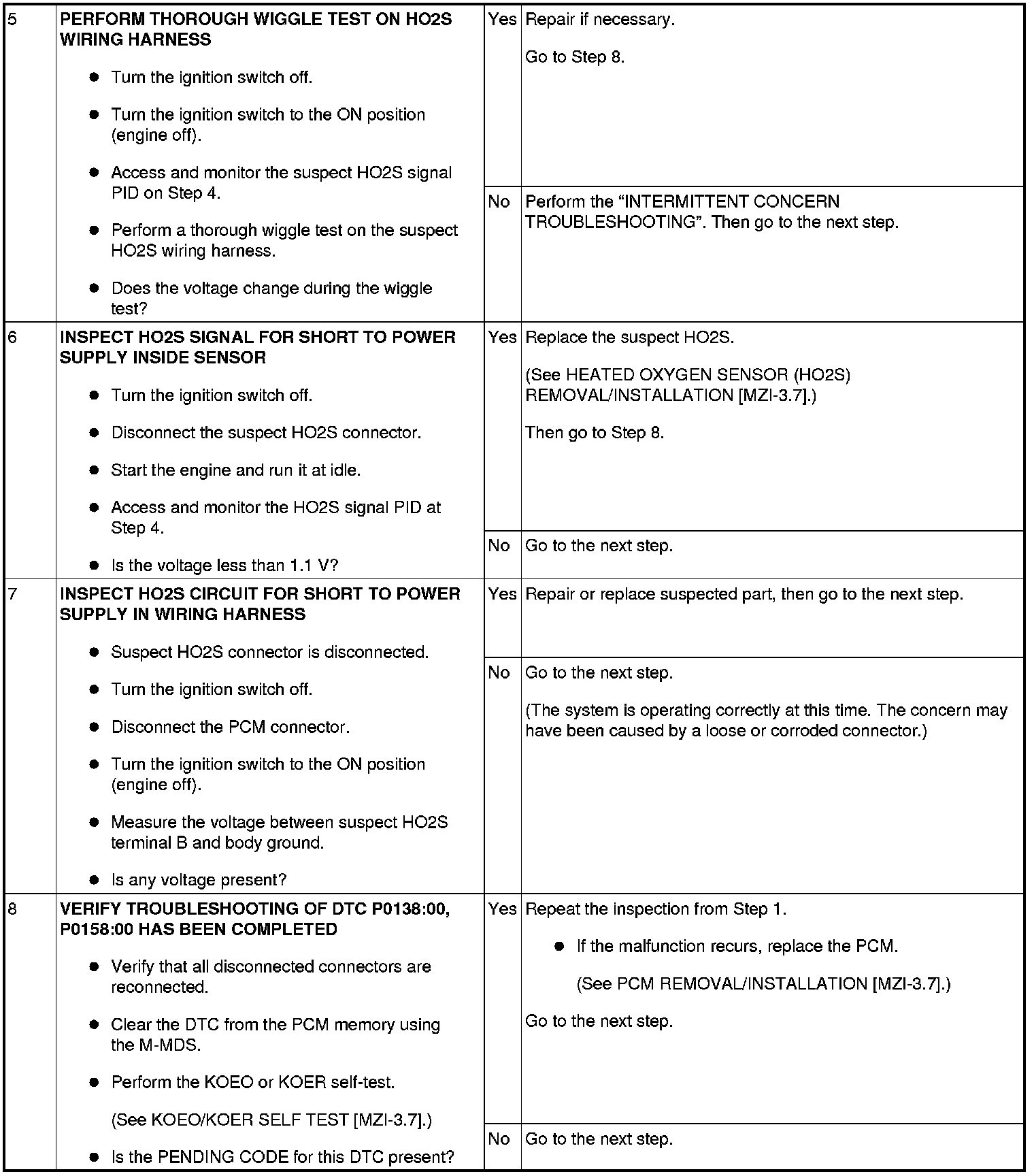 DTC P0138:00, P0158:00 [MZI-3.7]
