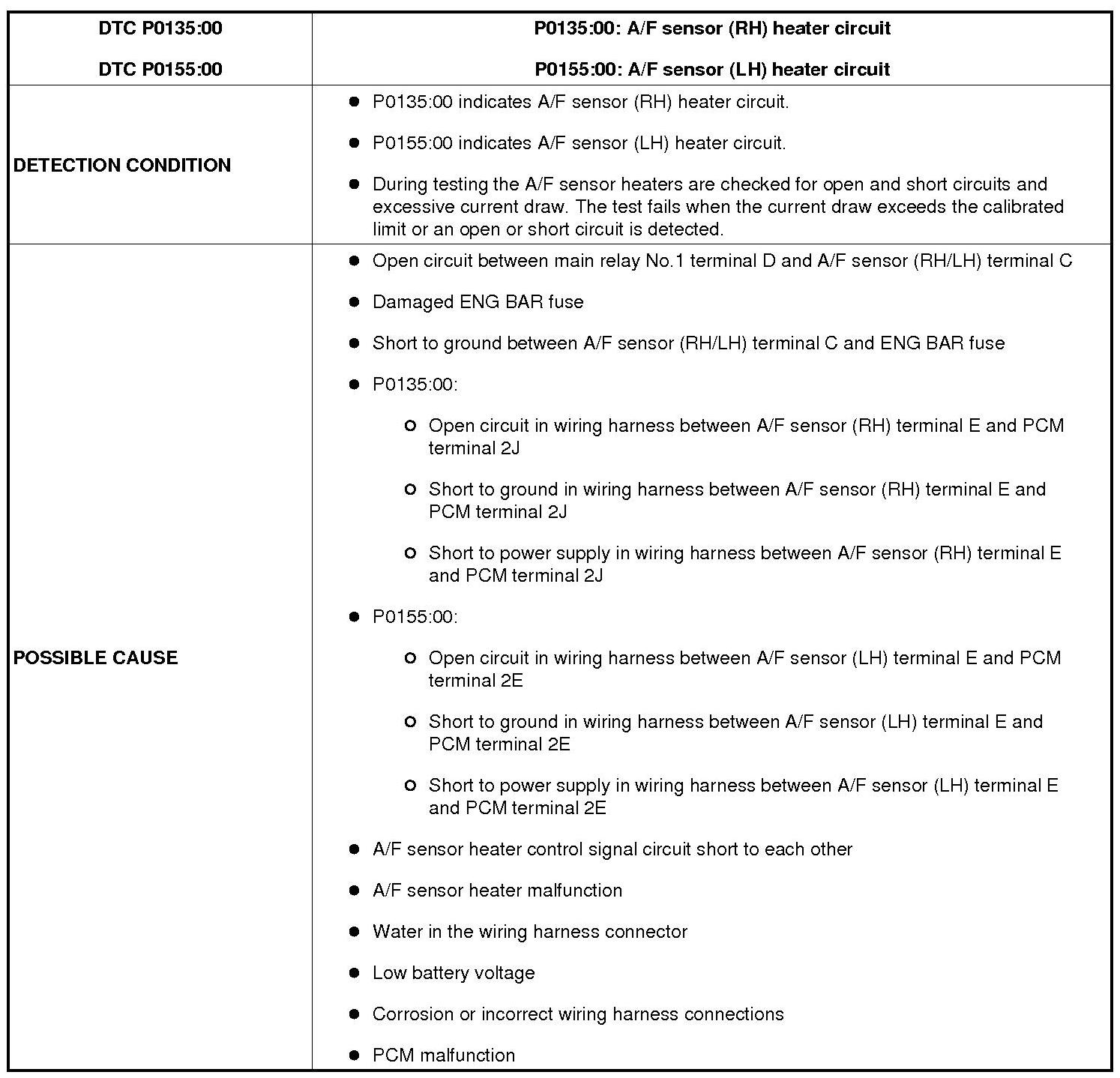 DTC P0135:00, P0155:00 [MZI-3.7]