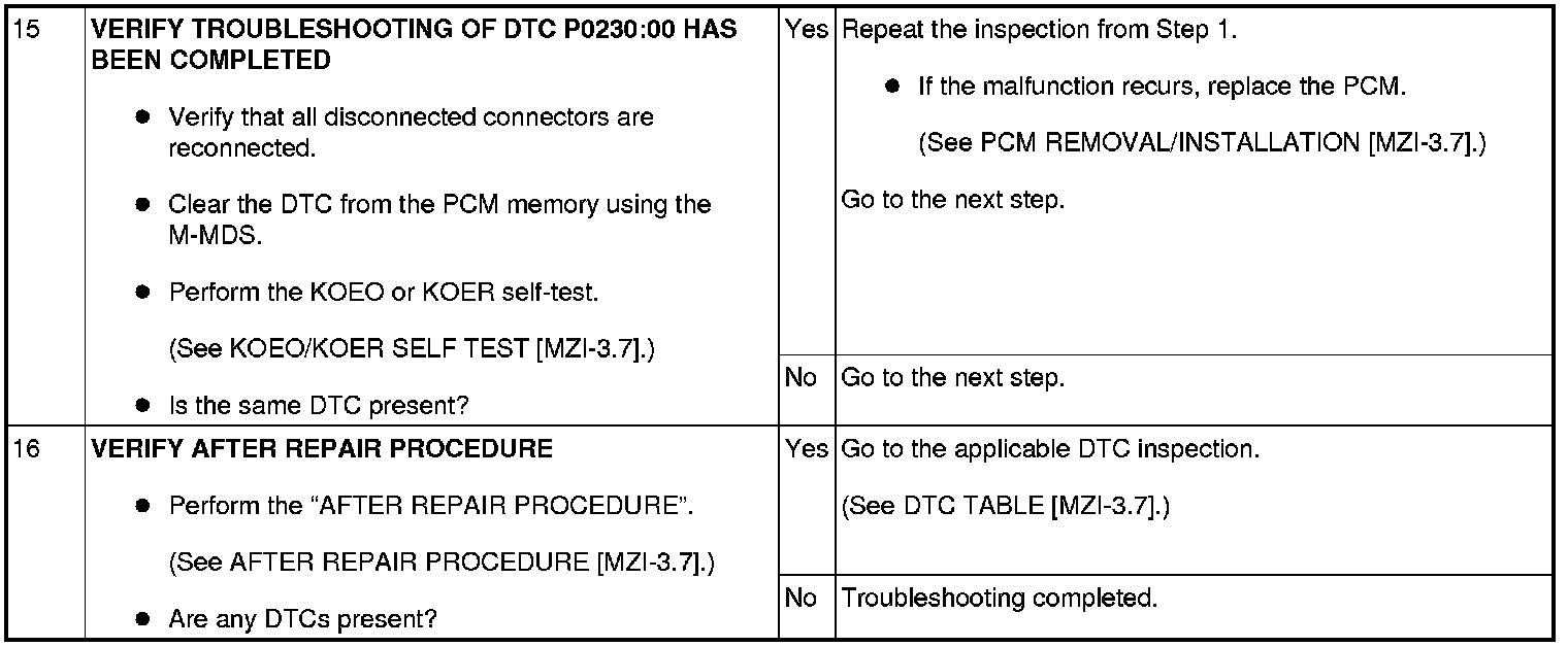DTC P0230:00 [MZI-3.7]