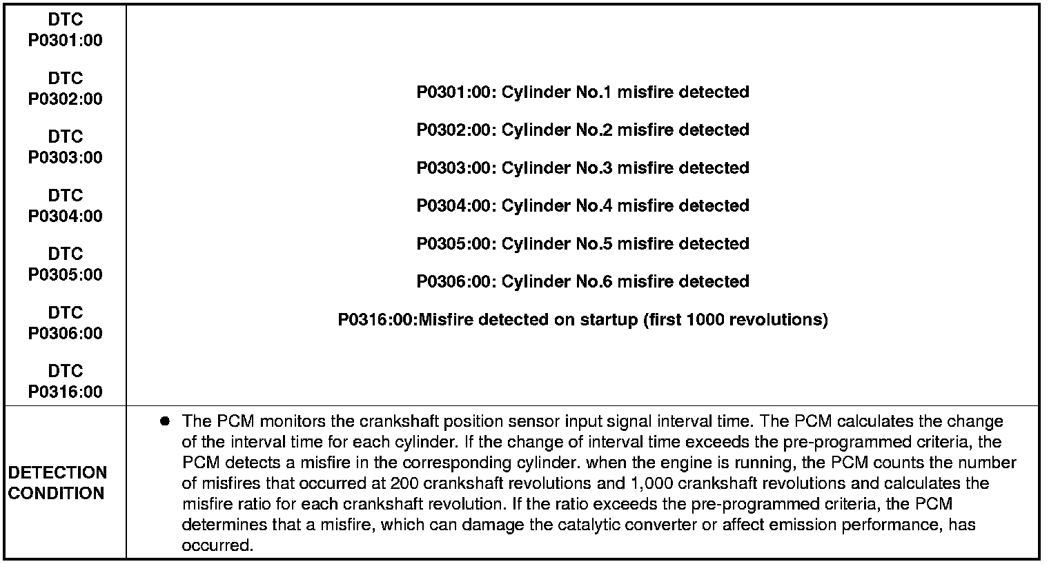 DTC P0301:00, P0302:00, P0303:00, P0304:00, P0305:00, P0306:00, P0316:00 [MZI-3.7]