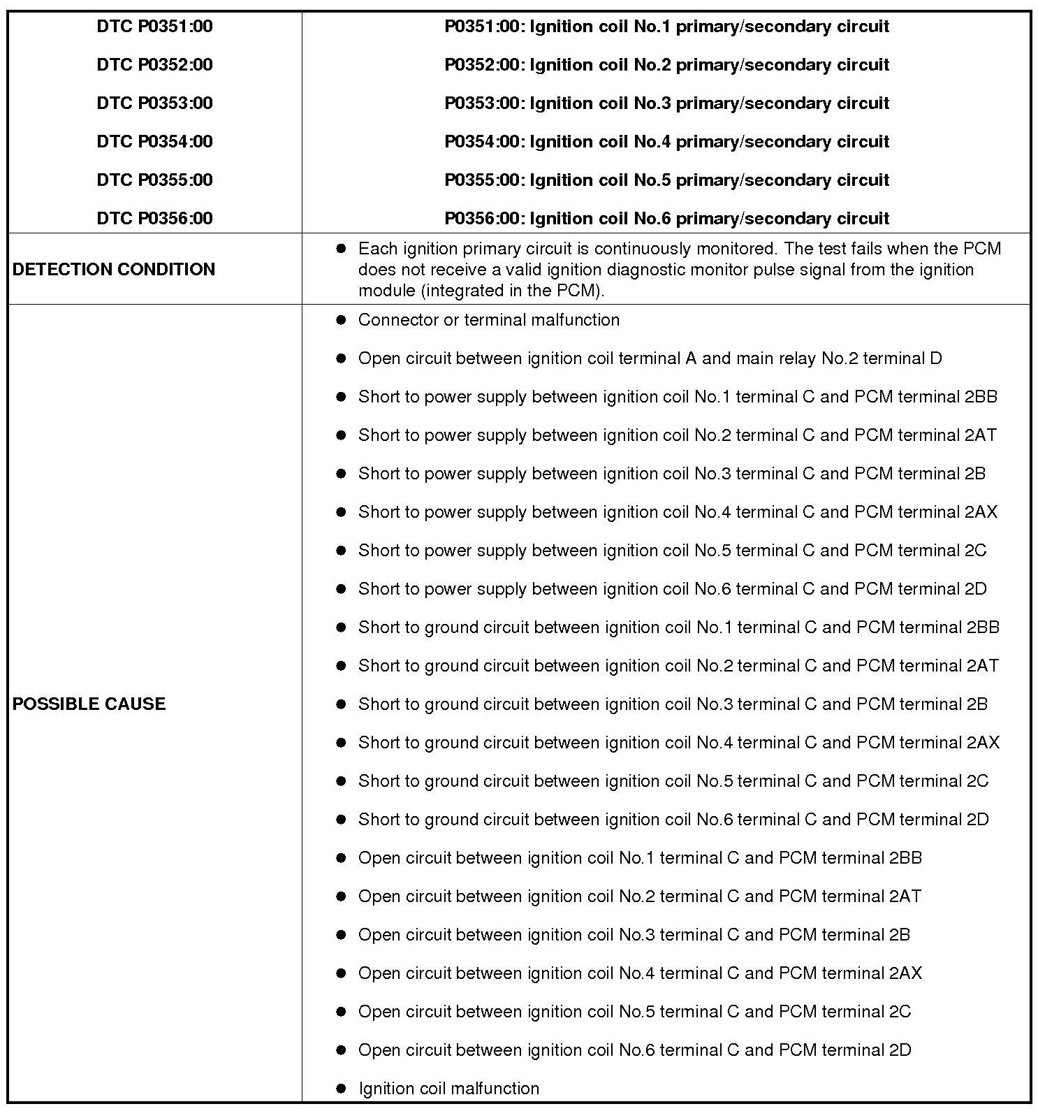 DTC P0351:00, P0352:00, P0353:00, P0354:00, P0355:00, P0356:00 [MZI-3.7]