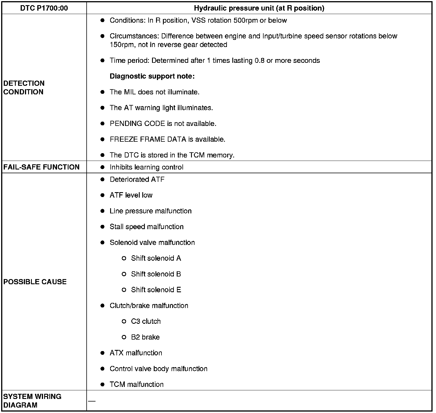 DTC P1700:00 [AY6A-EL, AY6AX-EL]