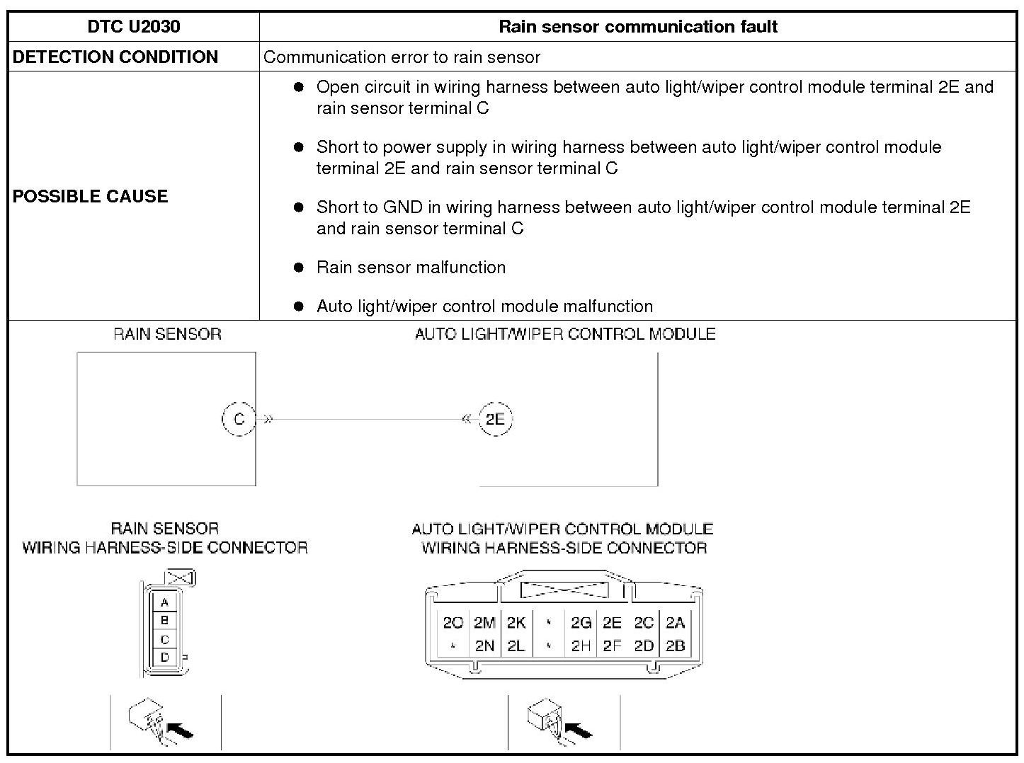 DTC U2030 [AUTO LIGHT/WIPER CONTROL MODULE]