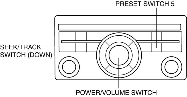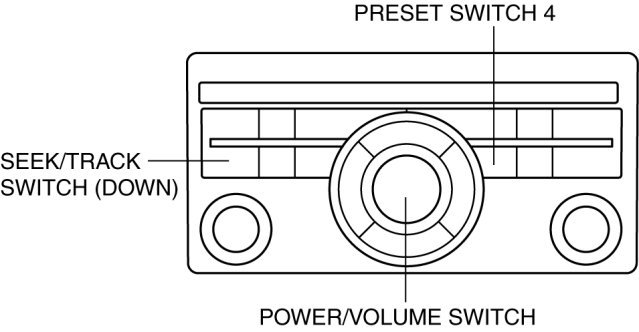 3. While pressing the POWER/VOLUME switch, simultaneously press the Preset switch 4 and the TRACK/SEEK switch (down) for 3 s or more.