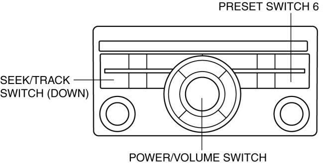 3. While pressing the POWER/VOLUME switch, simultaneously press the Preset switch 6 and the TRACK/SEEK switch (down) for 3 s or more.