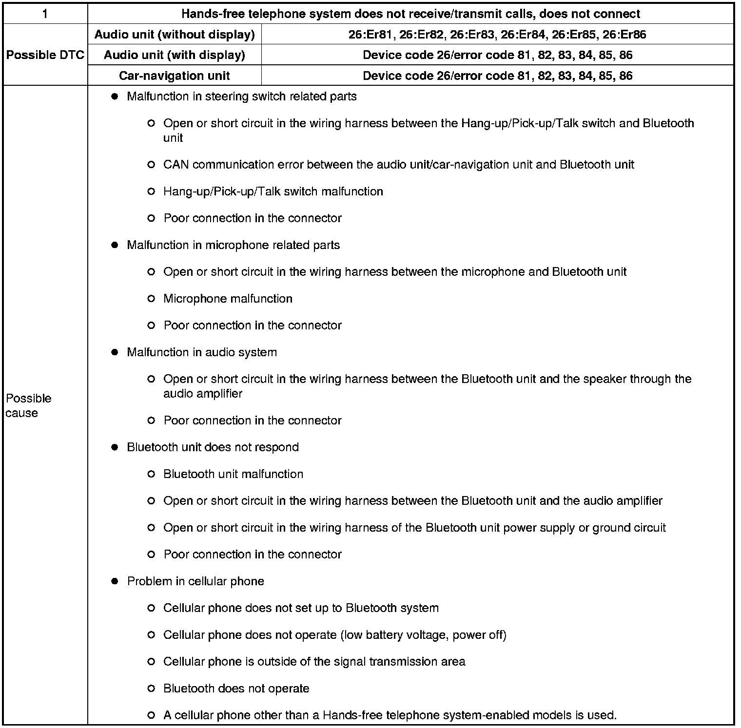 No.1 HANDS-FREE TELEPHONE SYSTEM DOES NOT RECEIVE/TRANSMIT CALLS, DOES NOT CONNECT [Bluetooth SYSTEM (HANDS-FREE TELEPHONE (HF/TEL) SYSTEM)]