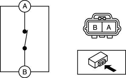 2. Inspect for continuity between the hood latch switch terminals.