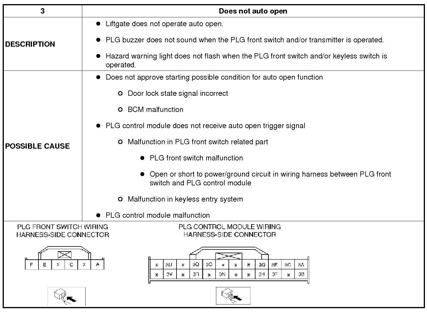 No.3 DOES NOT AUTO OPEN [POWER LIFTGATE (PLG) SYSTEM]