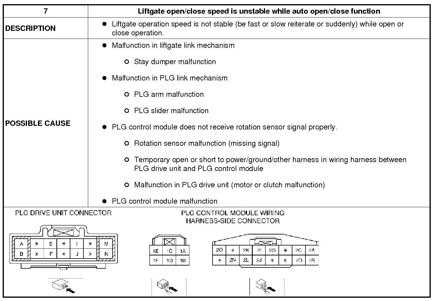 No. 7 Liftgate Open/Close Speed Is Unstable While Auto Open/Close Function - Power Liftgate (PLG) System