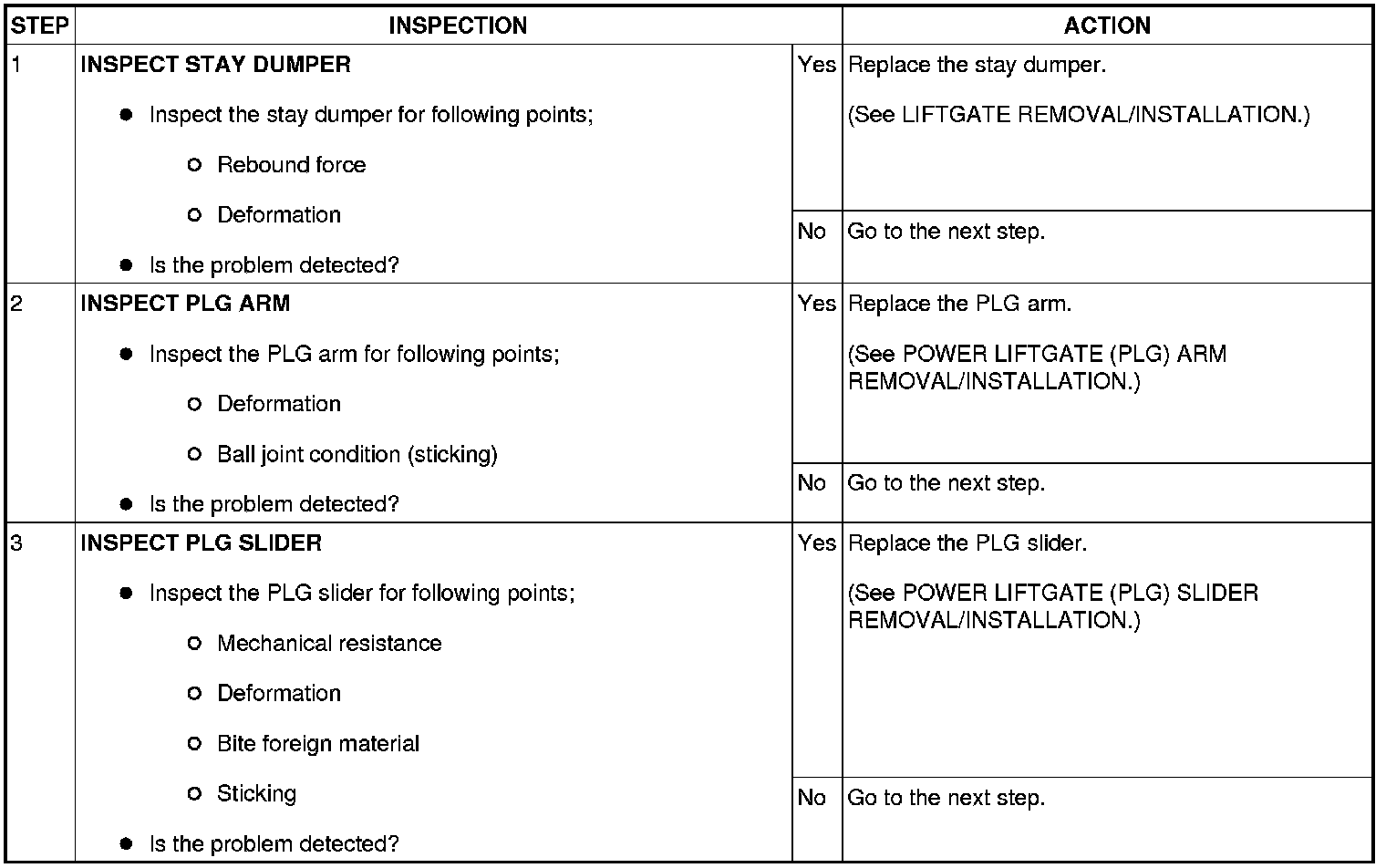 No.7 LIFTGATE OPEN/CLOSE SPEED IS UNSTABLE WHILE AUTO OPEN/CLOSE FUNCTION [POWER LIFTGATE (PLG) SYSTEM]