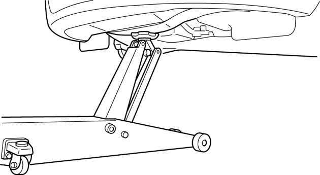 - Perform the work using a garage jack. When jacking up the rear suspension with unloaded condition, to prevent bending the front of the vehicle, support the jack up point for the front crossmember using a garage jack.