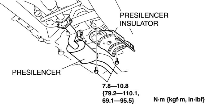 - The rear upper arm inner bolt cannot be tightened completely with the rear upper arm installed to the vehicle due to the narrow operation space. Therefore, mark the position before removing the rear upper arm, align the rear crossmember and rear upper arm markings when installing the rear upper arm, and tighten the rear upper arm inner bolt completely before installing the rear crossmember component to the vehicle.