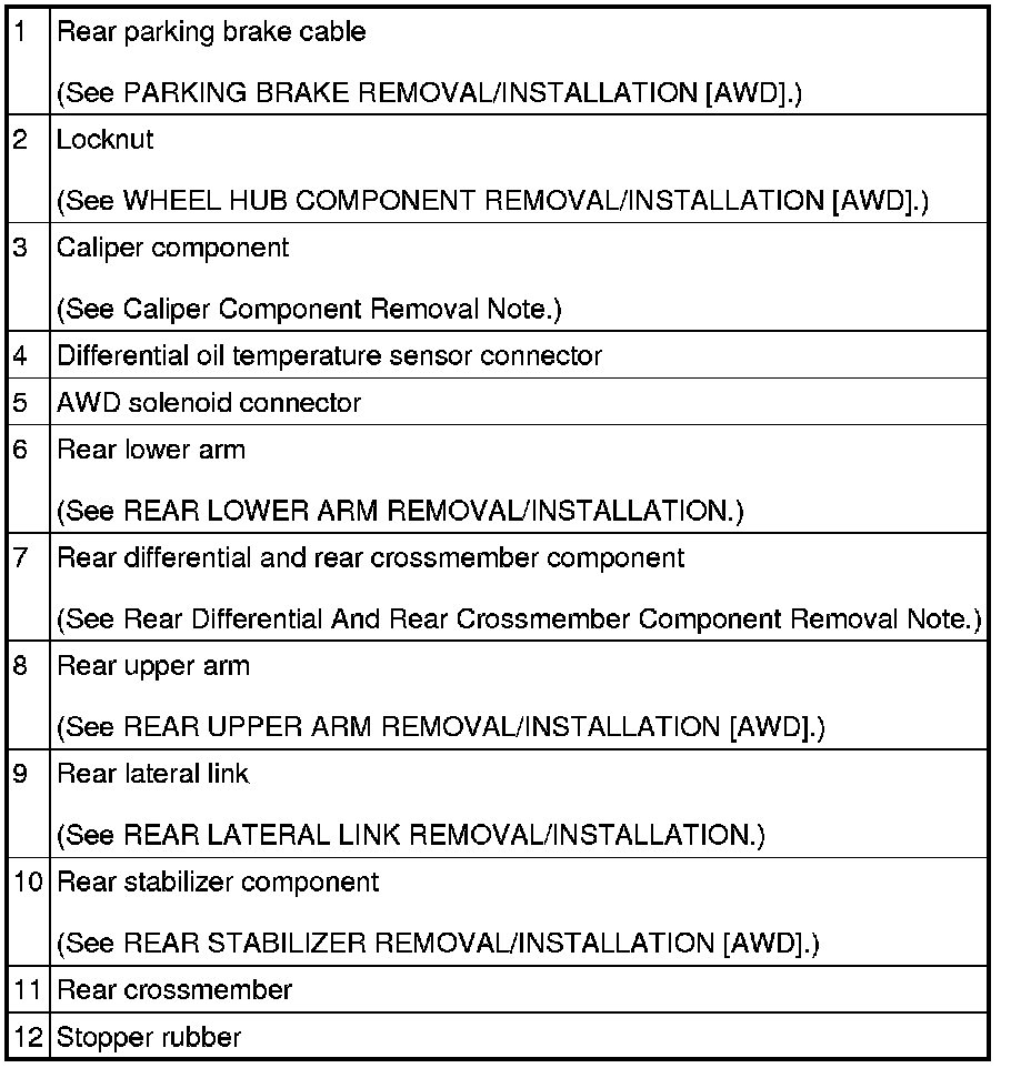 REAR CROSSMEMBER REMOVAL/INSTALLATION [AWD]