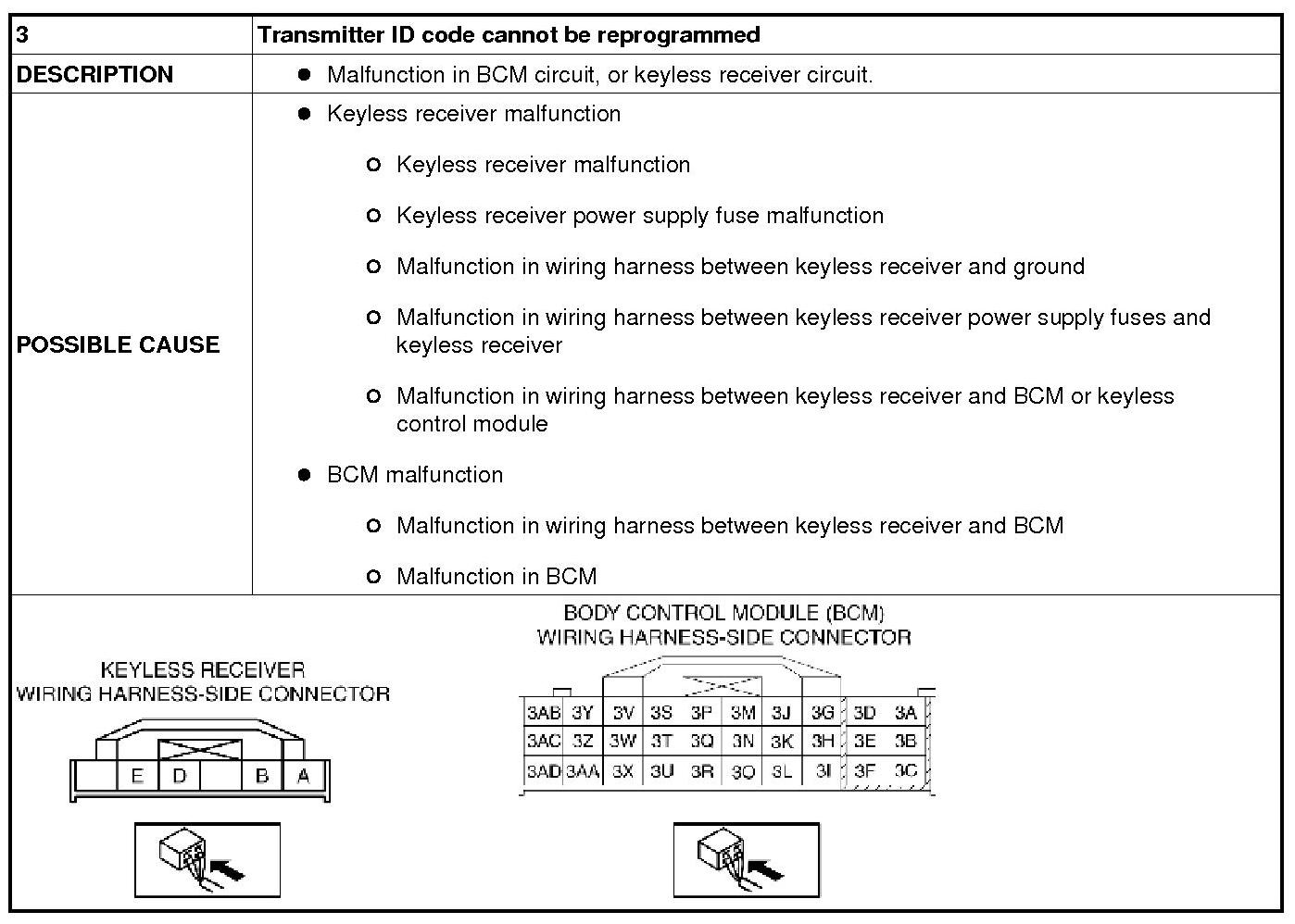 NO.3 TRANSMITTER ID CODE CANNOT BE REPROGRAMMED [KEYLESS ENTRY SYSTEM]