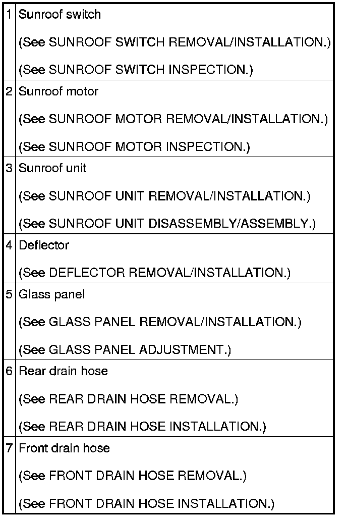SUNROOF LOCATION INDEX