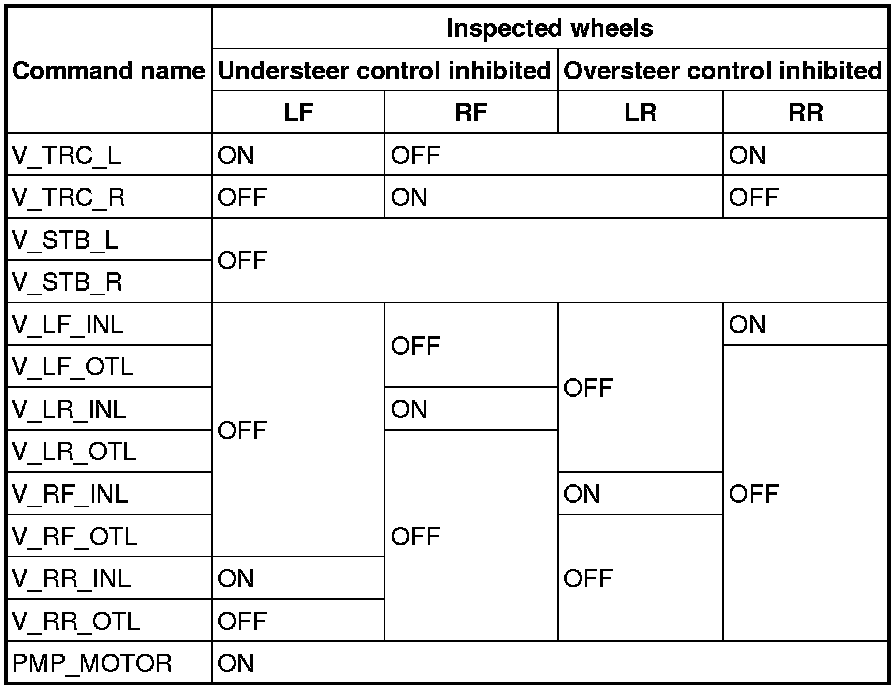 3. Set up an active command mode inspection according to the combination of commands below. Brake pressure retention