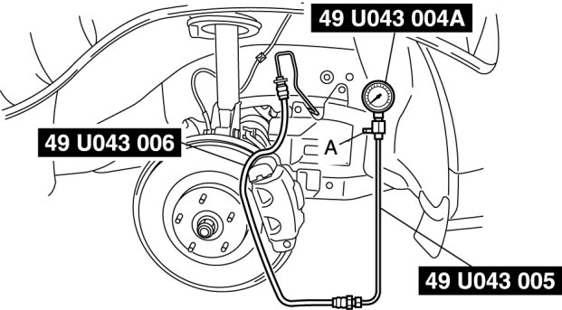5. Bleed the brake line and the SSTs of air. Bleed the air from the SSTs using bleeder screw A.