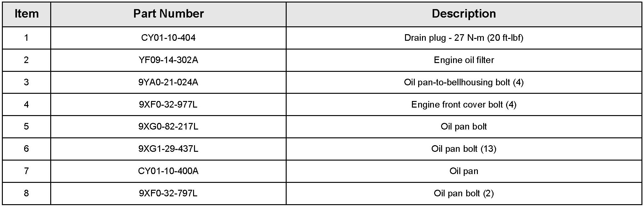 NOTE: These part numbers are for reference only. Cleanliness is extremely important. Any foreign material, including any material created while cleaning gasket surfaces, that enters the oil passages, coolant passages or the oil pan, may cause engine failure.