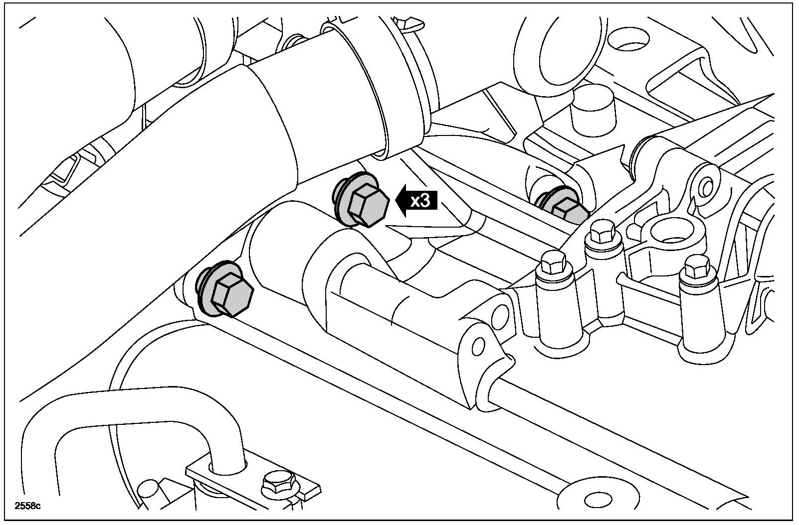 6. Loosen the 3 upper bellhousing-to-engine bolts 3 mm (0.12 in).