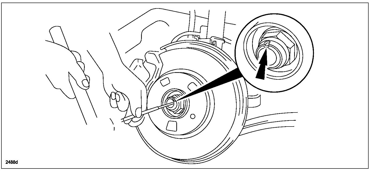 - Install new RH hub nut, tighten to 235.2-274.4 N-m (173.5-202.3 ft-lb) and stake it.