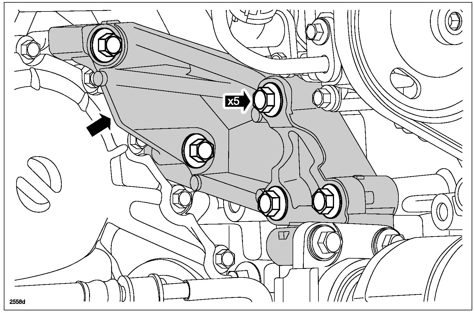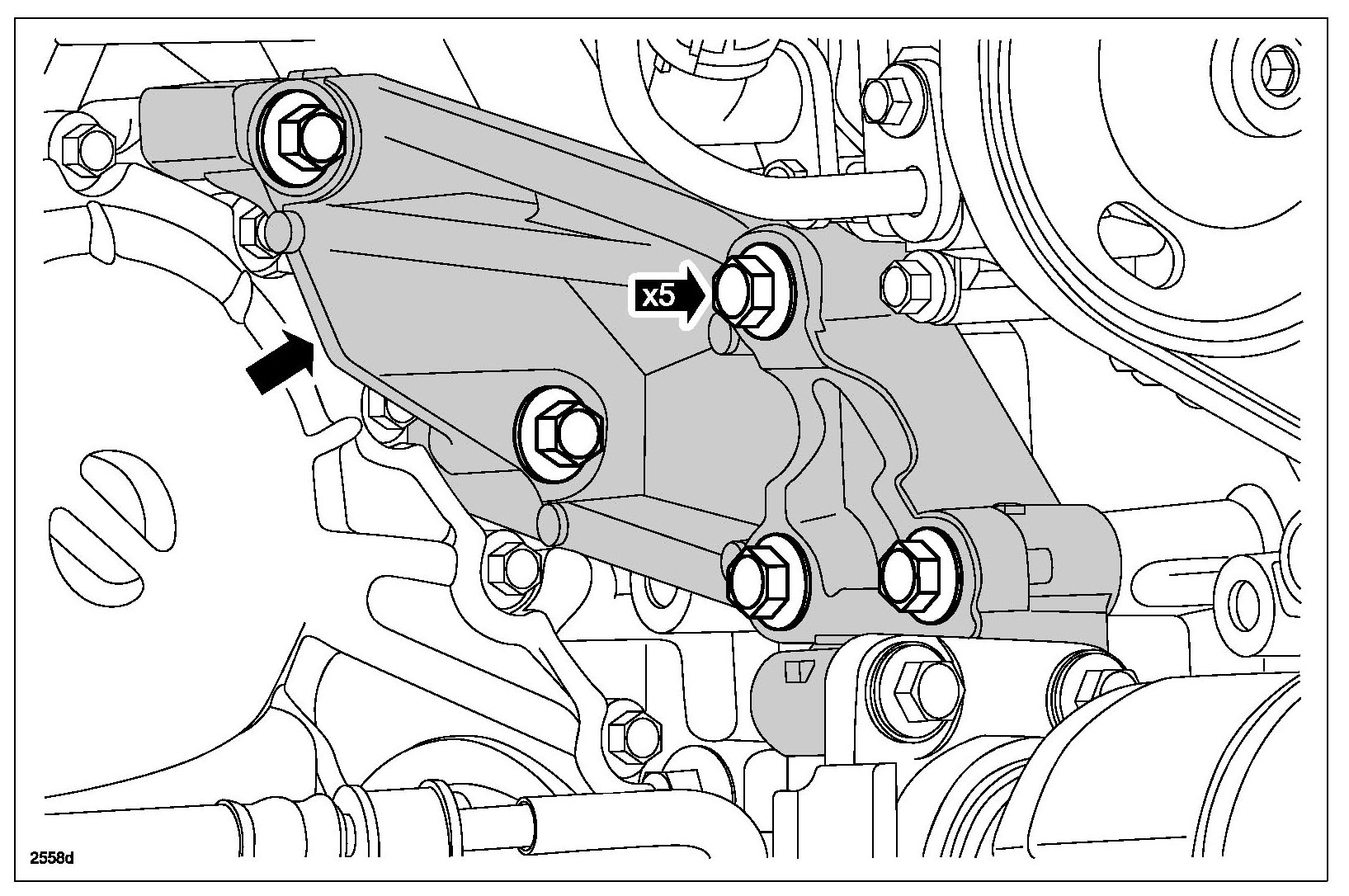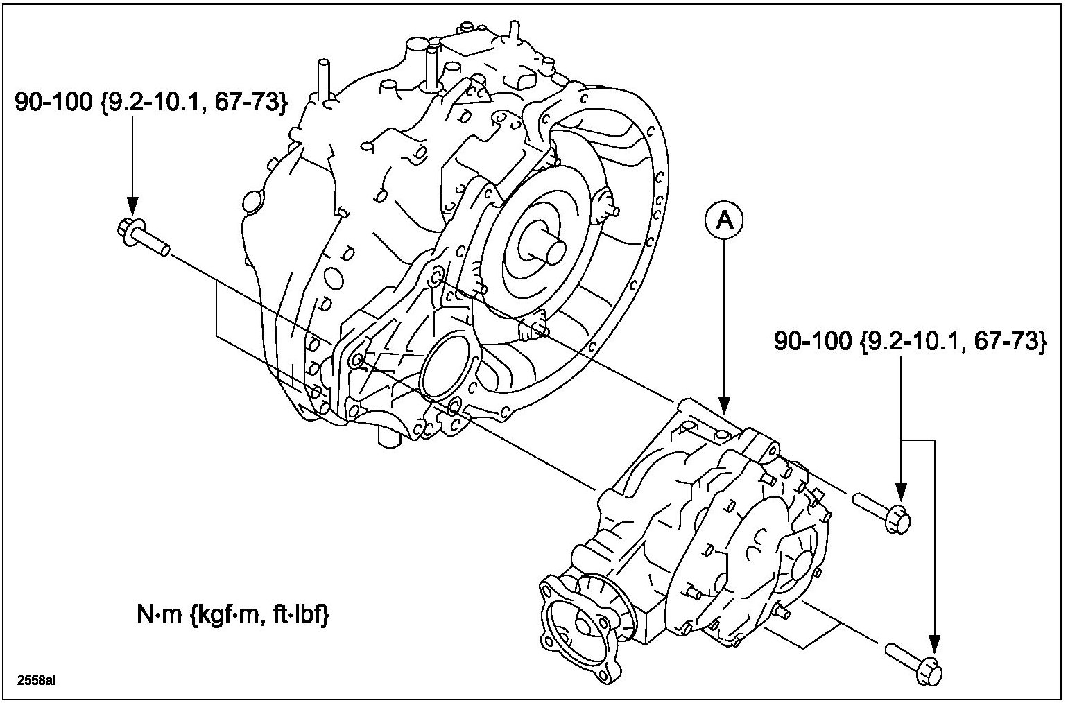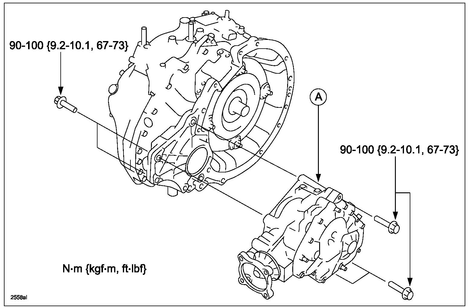 - Tighten the 5 Transfer bracket bolts to 70 N-m (52 ft-lb).