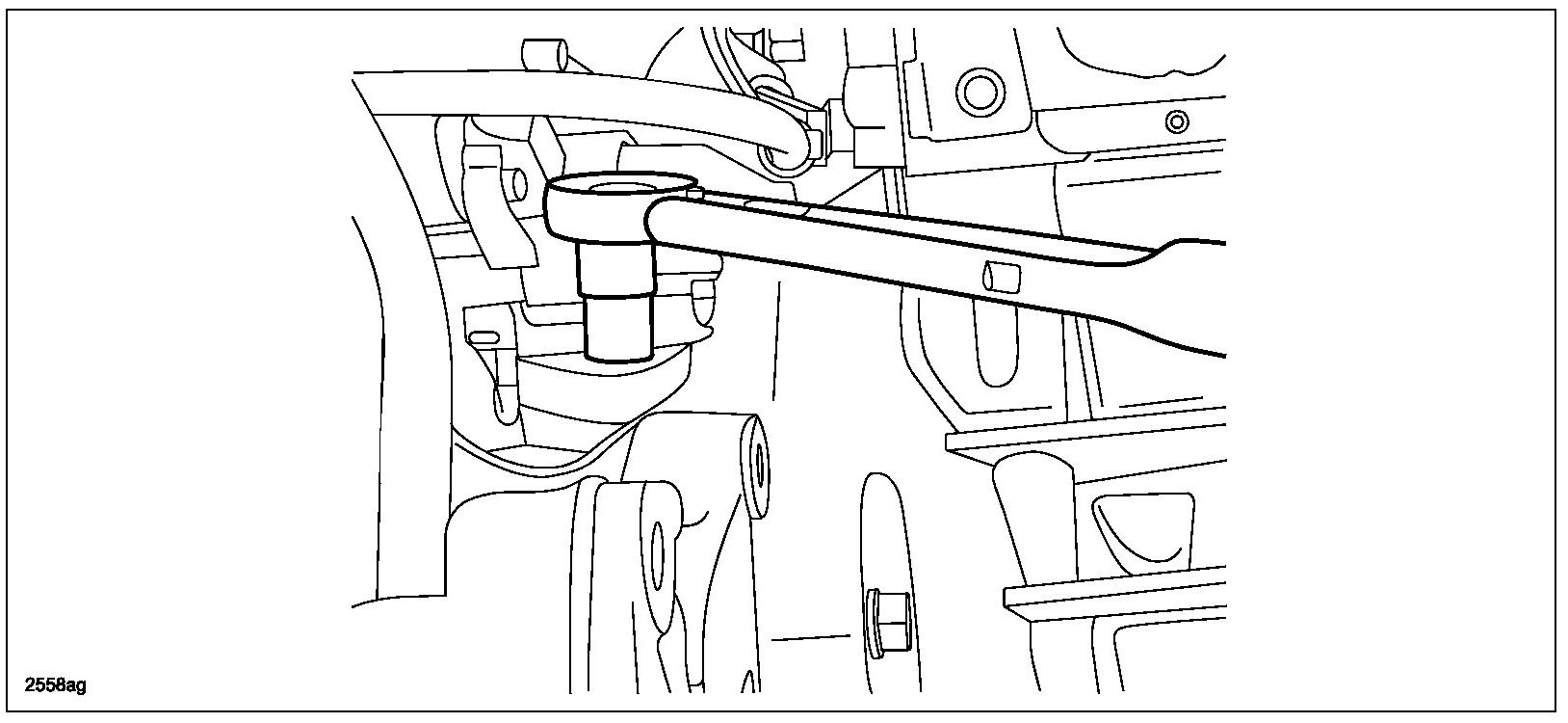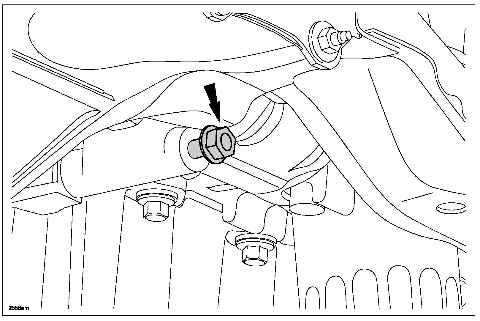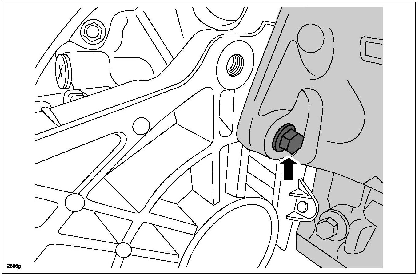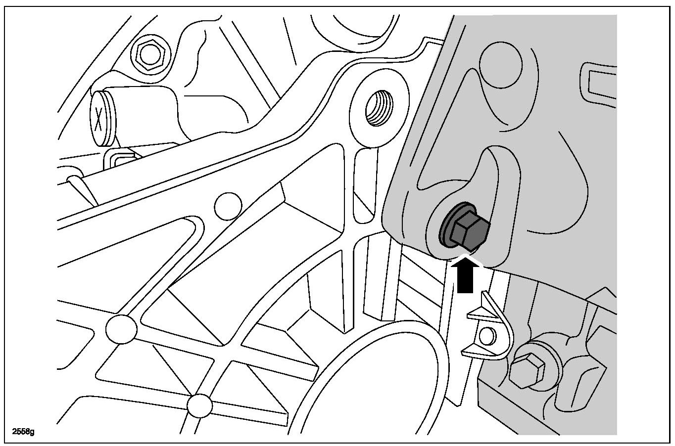 32. Loosen the RH engine-to-bellhousing bolt 3 mm (0.12 in) maximum.