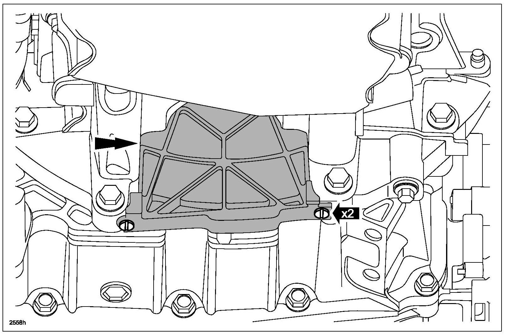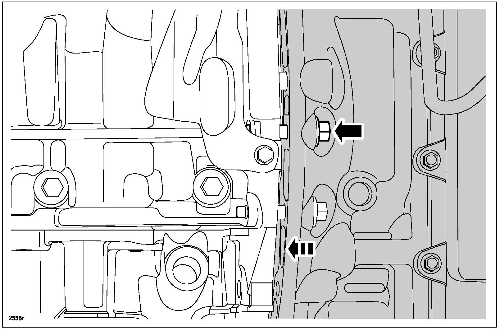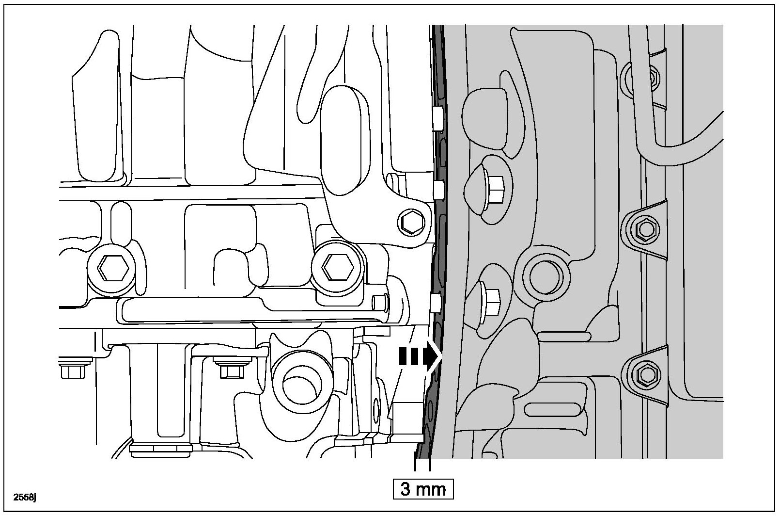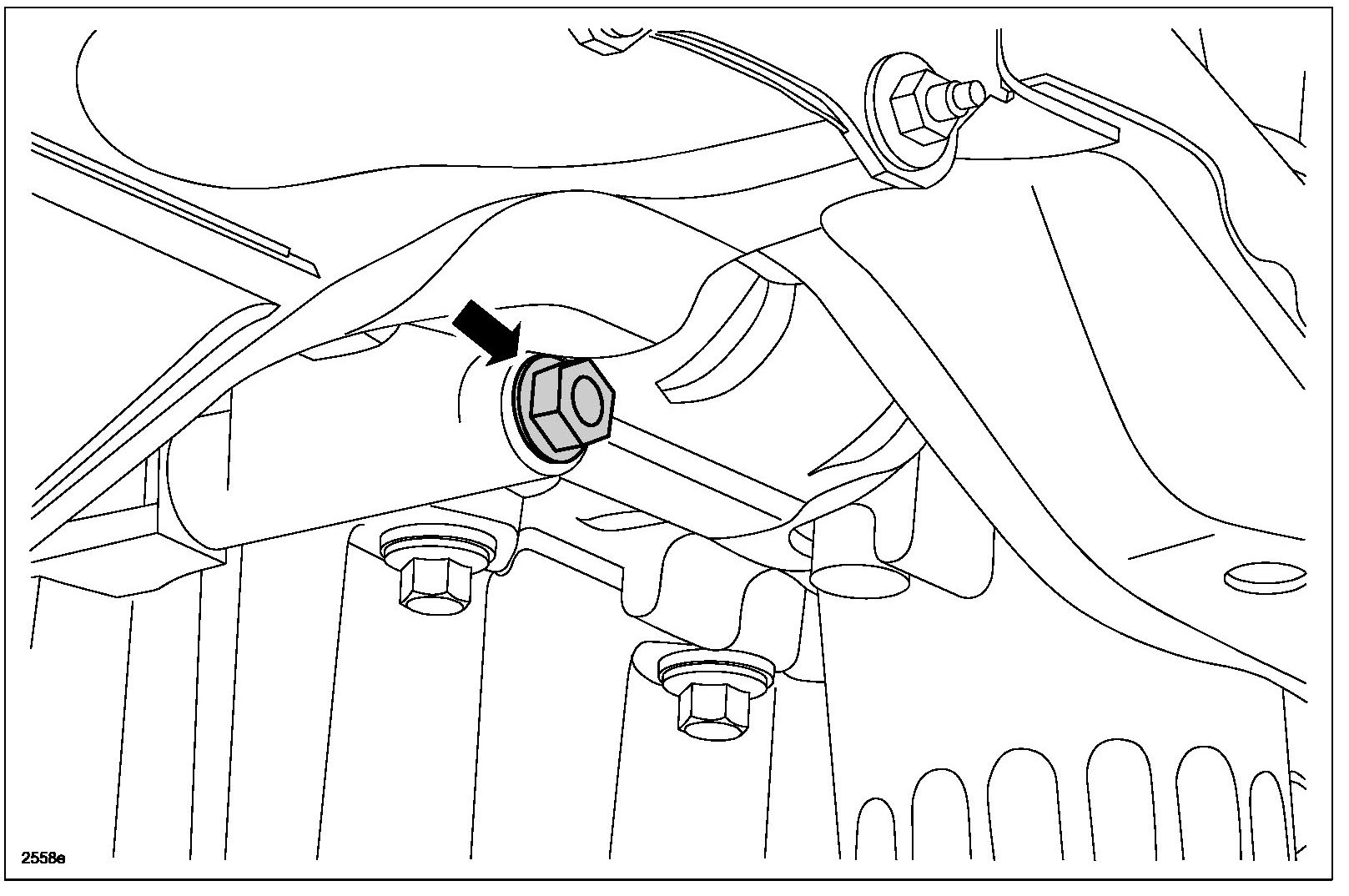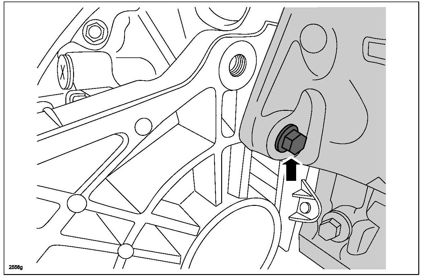 32. Loosen the RH engine-to-bellhousing bolt 3 mm (0.12 in) maximum.
